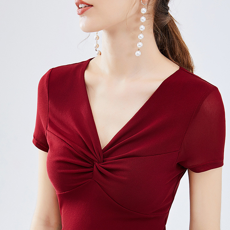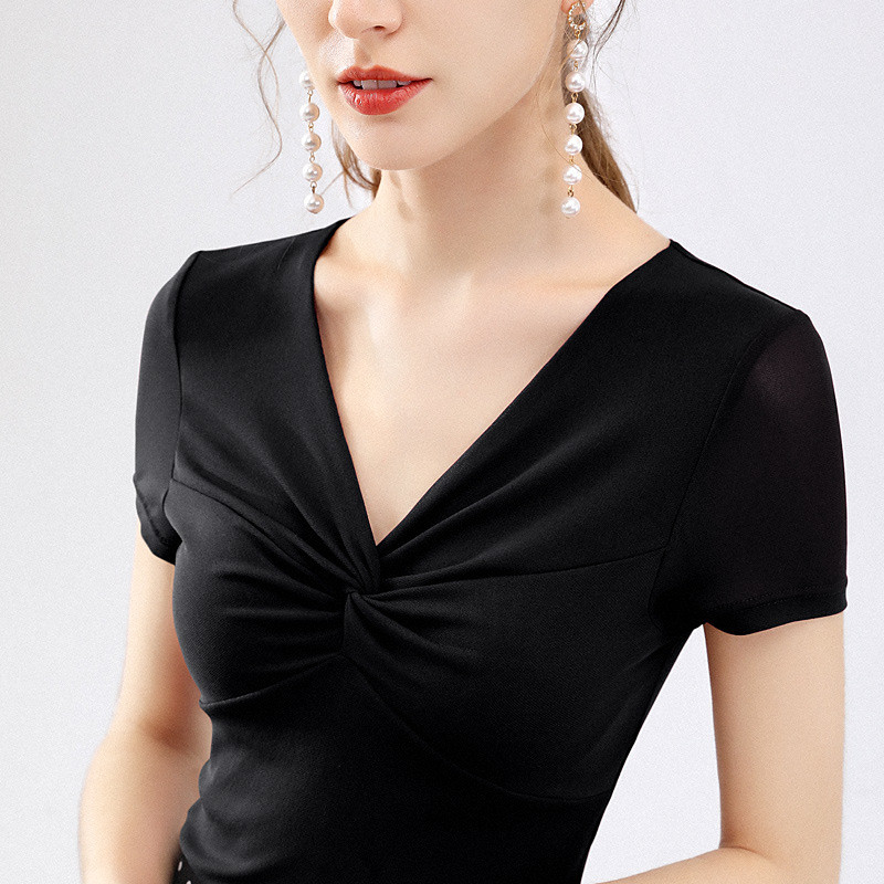 Ballroom Dance Top Ruching Women's Training Running Short Sleeve Ch...