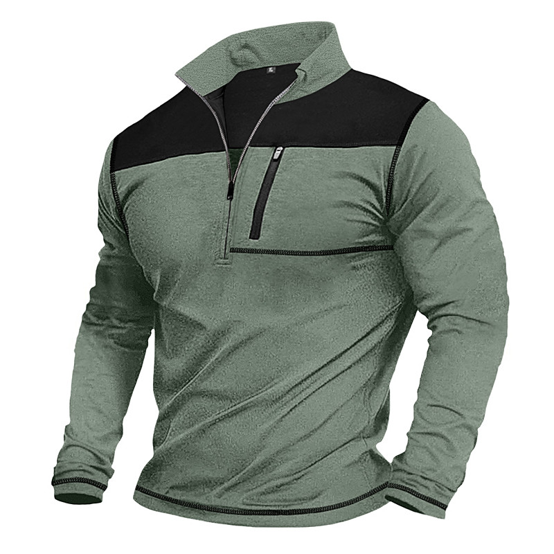 Men's T Shirt Zip Polo Tactical t shirt Tee Top Long Sleeve Quarter...