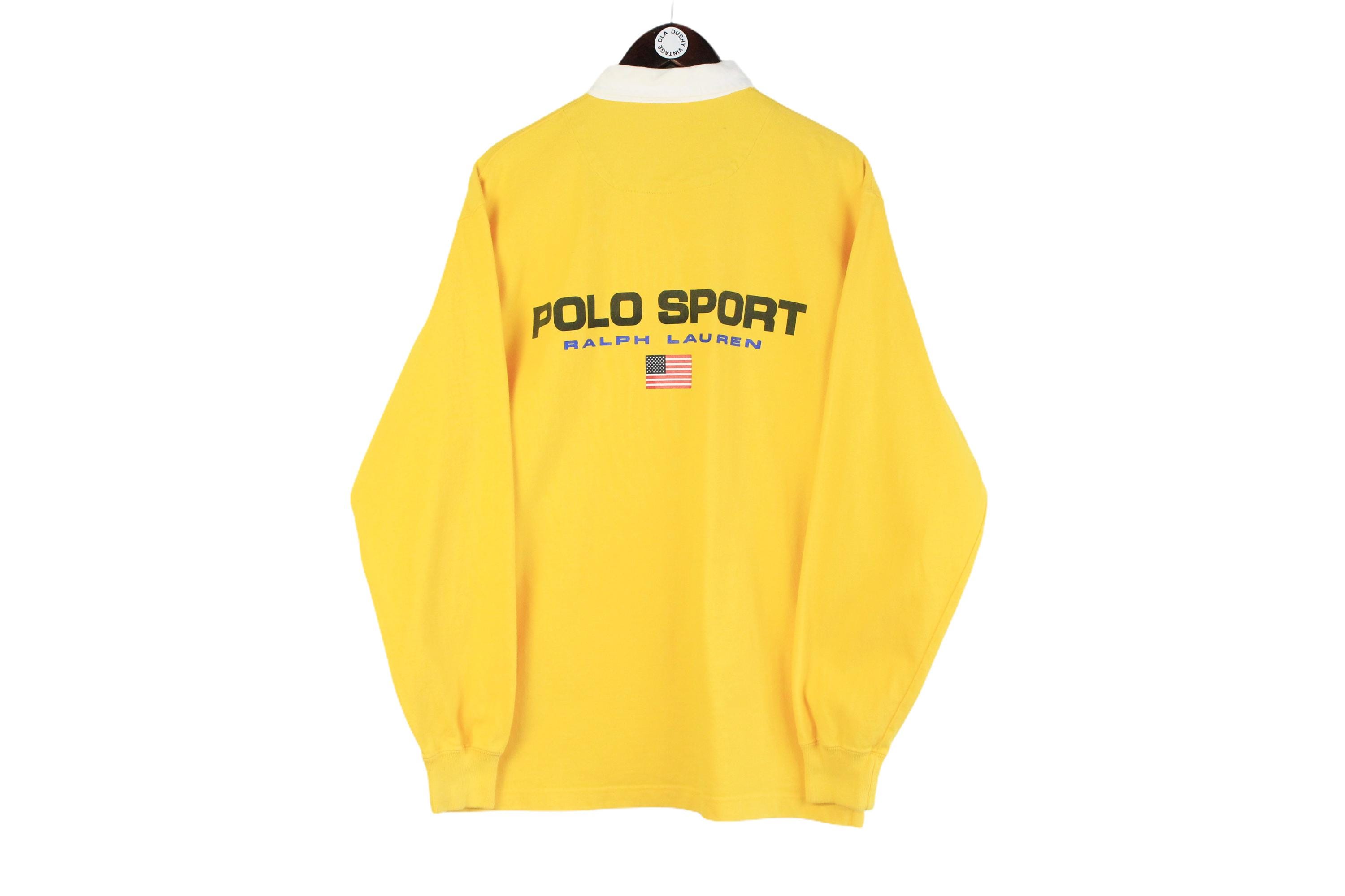 Vintage Polo Sport by Ralph Lauren Rugby Shirt Size L Yellow Big Lo...