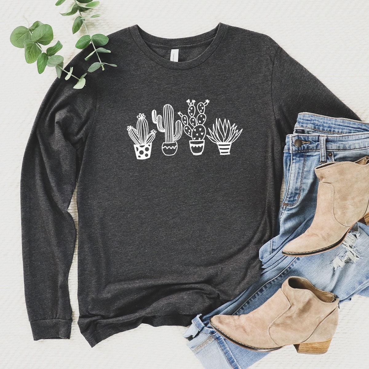 Cactus Plants Long Sleeve Shirt, Botanical Long Sleeve Shirt, Cactu...