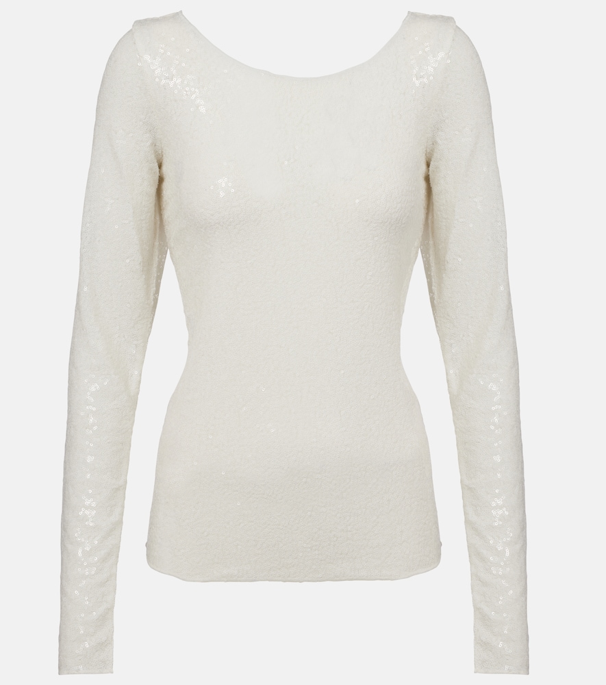 Polo Ralph Lauren, Sequined jersey T-shirt, Women, White, UK 12, To...