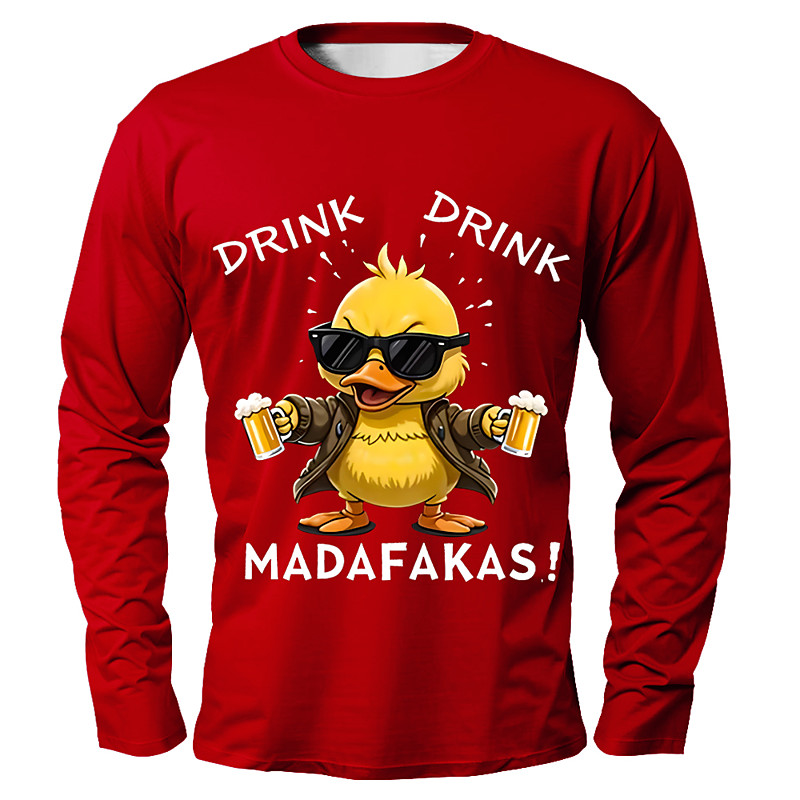 Mens Long Sleeve Graphic Tee - Funny Drinking Duck 'DRINK DRINK MAD...
