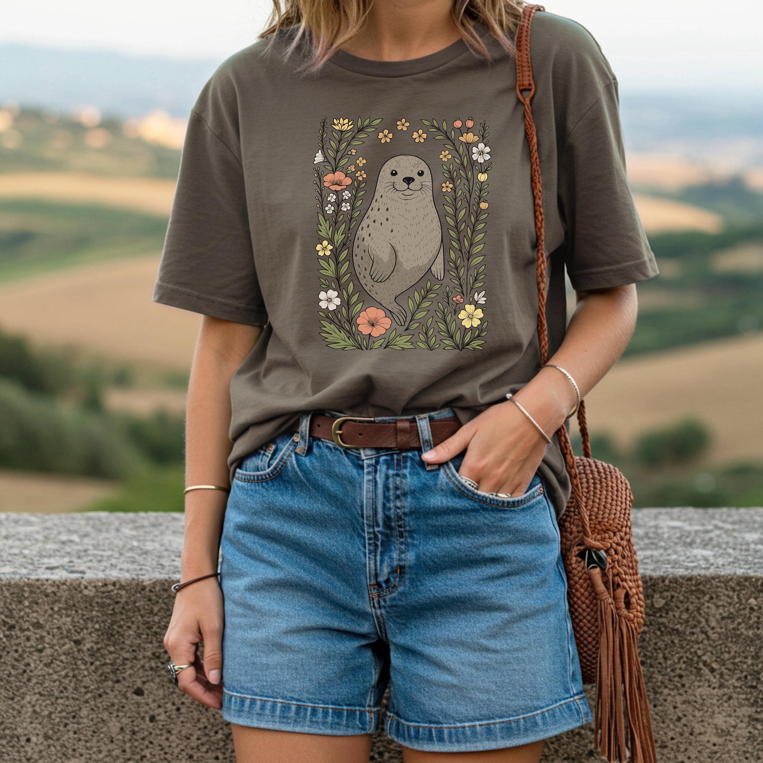 Cute Flower Sea Lion Shirt, Sea Lion T-shirt, Sea Lion Lover Tee, F...