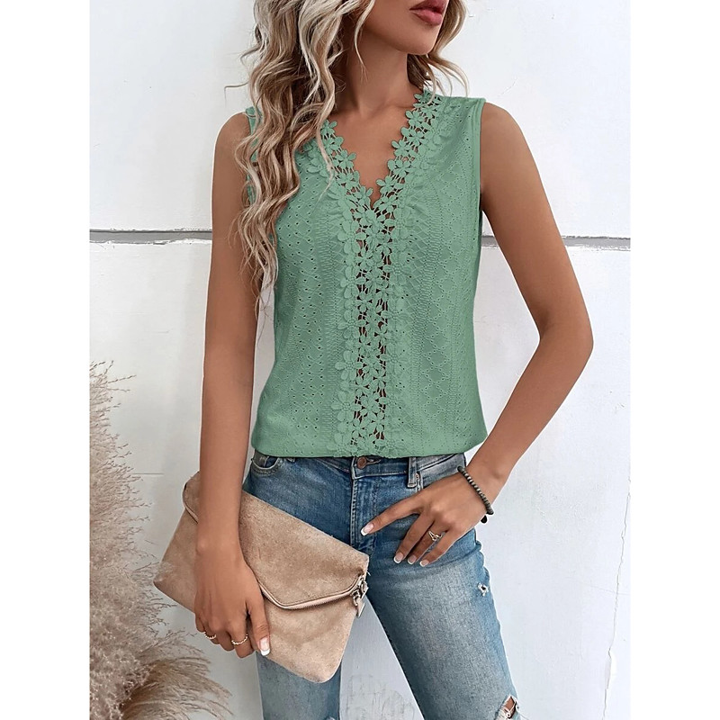 Women's White Elegant Lace Tops Eyelet Blouse Sexy Sleeveless Flora...