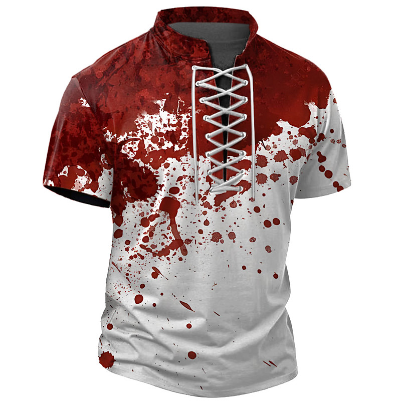 Men's Blood Splatter Blood stains Henley Shirt T shirt Tee Short Sl...