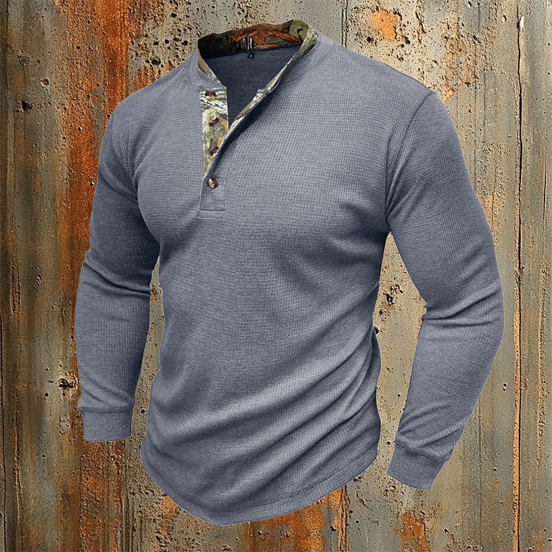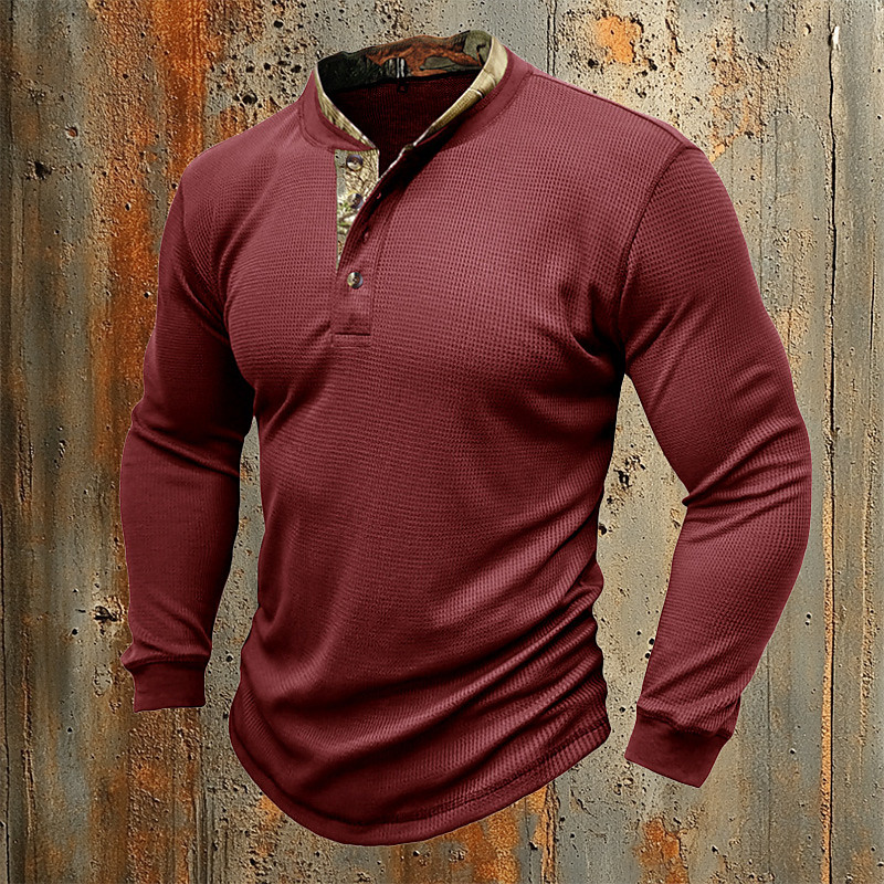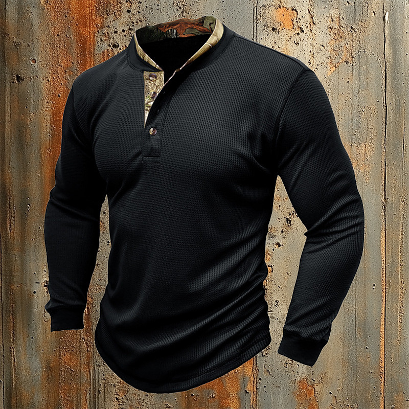 Men's Waffle T-shirt T Shirt Henley Shirt Long Sleeve Solid Color K...