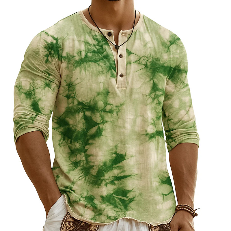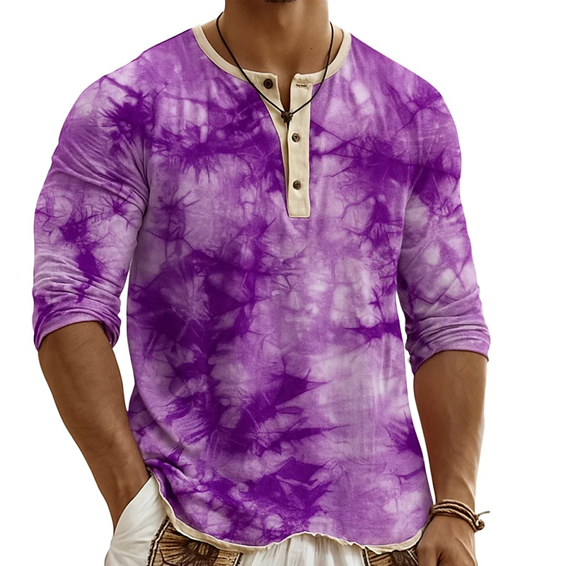 Men's Henley Shirt Tee Henley Top Long Sleeve Tie Dye Fashion Desig...