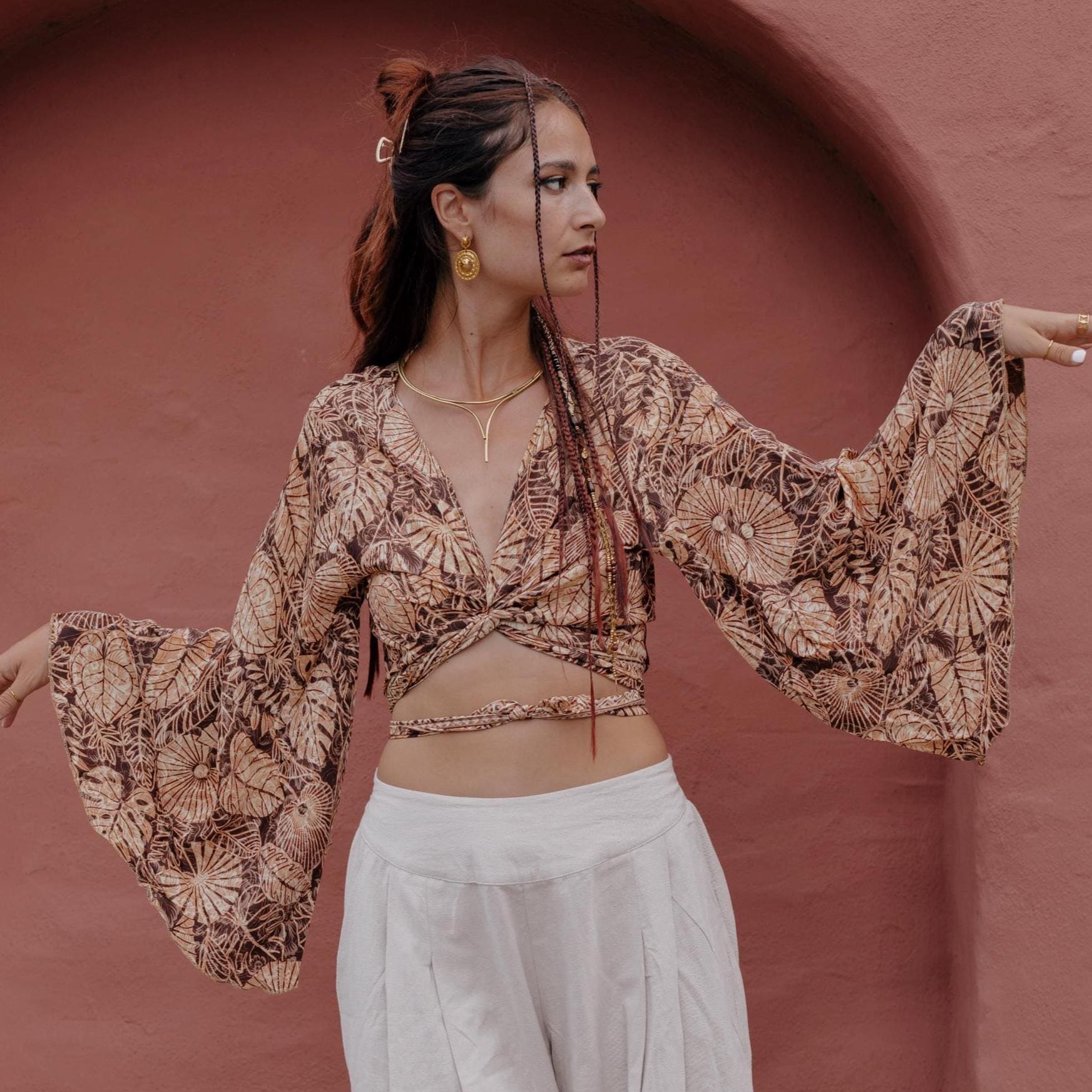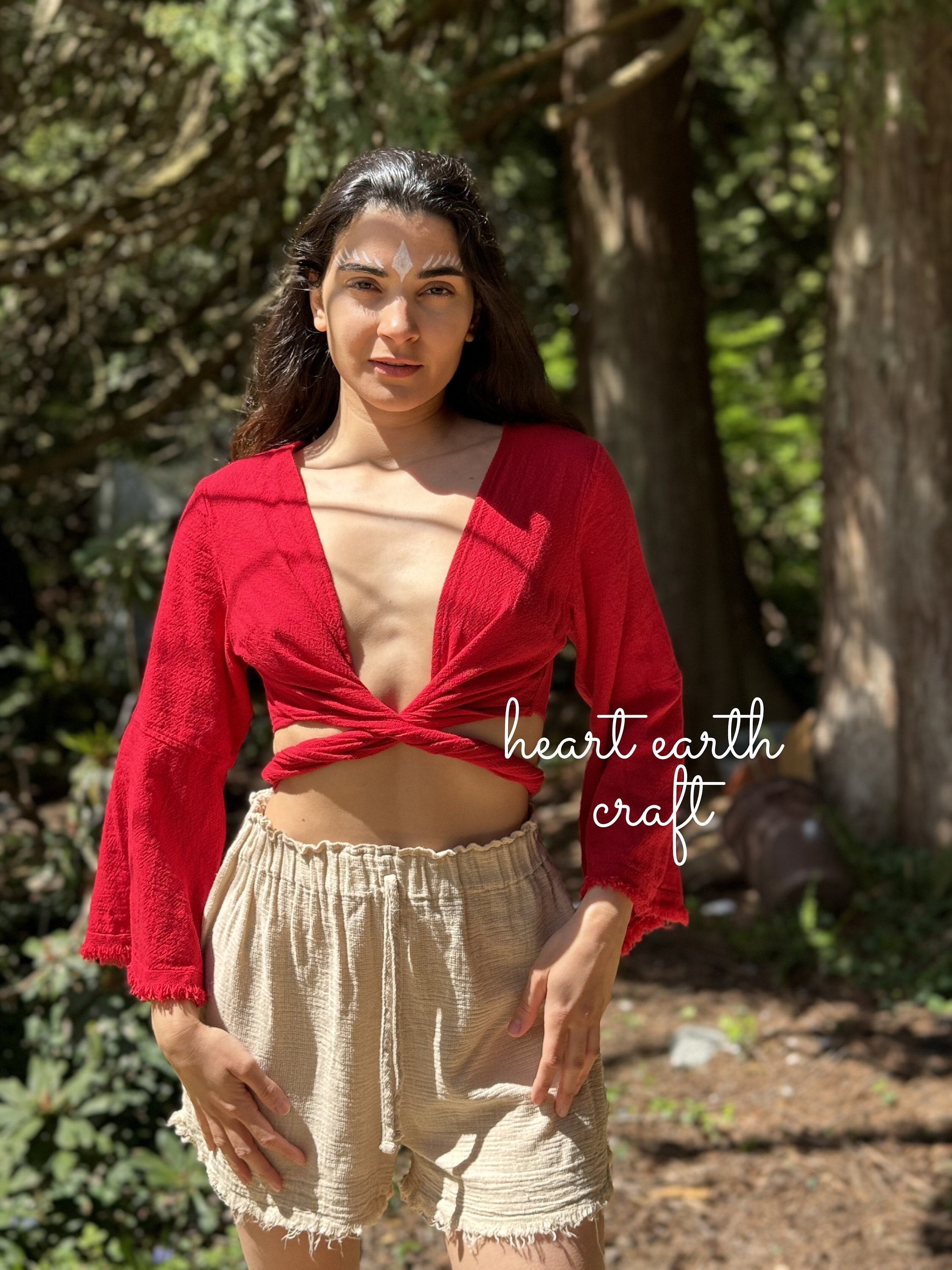 Cotton Long Sleeve Crop Top - Cotton Long Sleeve Wrapped Crop- Fest...
