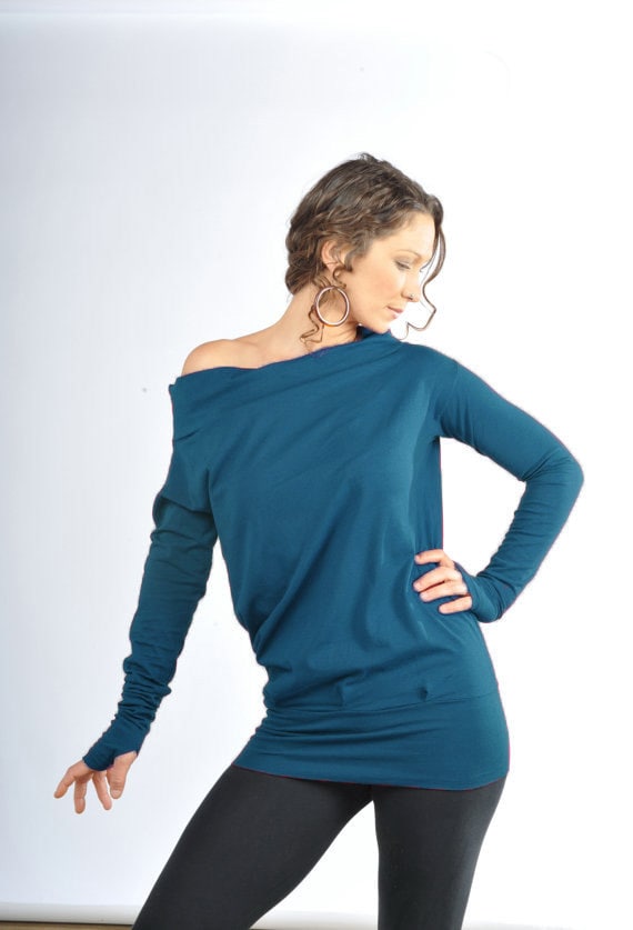 Relaxed Long sleeve-longsleeve top-thumbhole shirt-teal long sleeve...