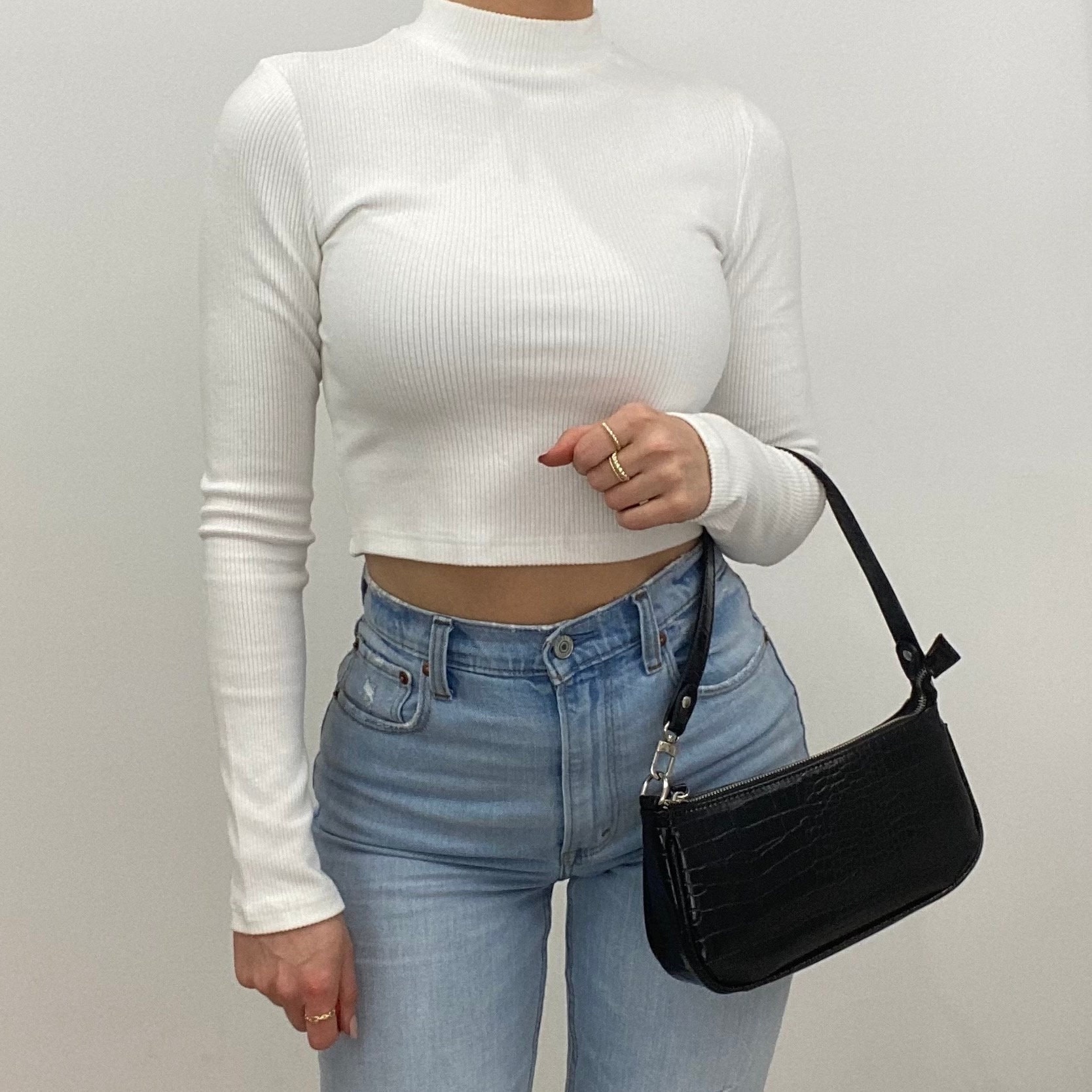 White Long Sleeve Crop Top | Crop Long Sleeve Top | White Mock Turt...