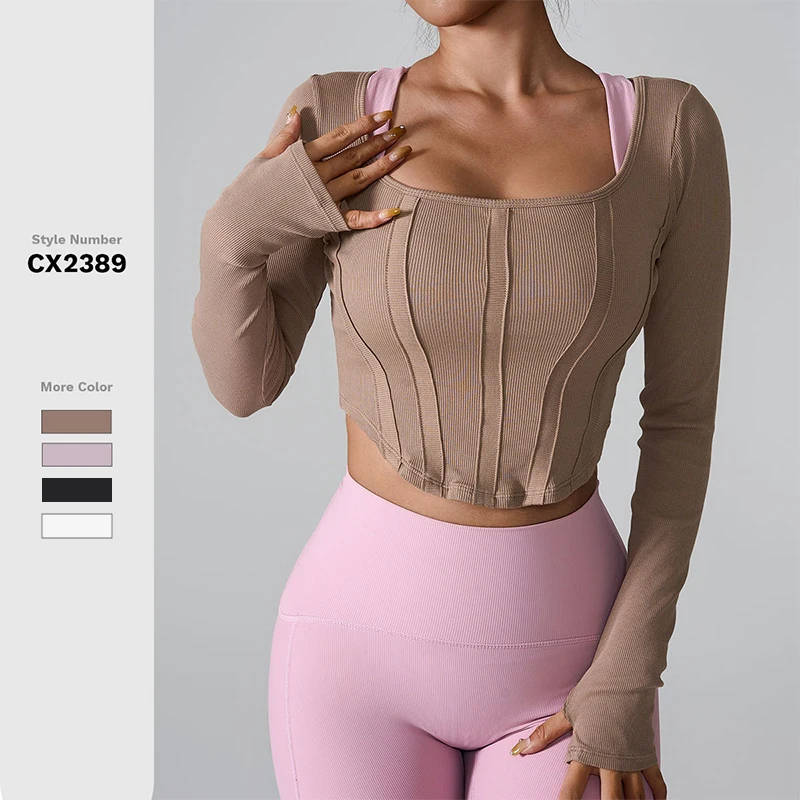 Customized Women Pilates Gym Wear Top Long Sleeve Crop Tops 2 in 1 ...
