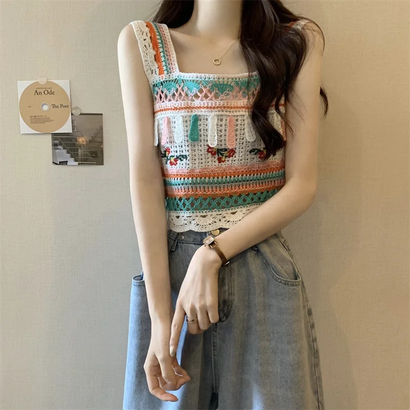 Summer Web Crochet Sweater Vest for Women Handmade Beach Style Holl...