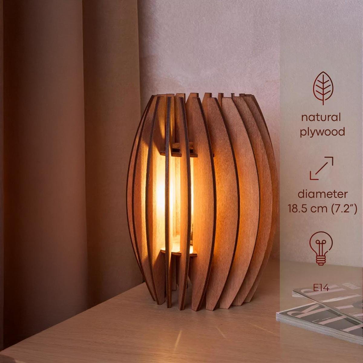 Geometric table lamp, Wooden table lamp shade, Decorative ambient t...