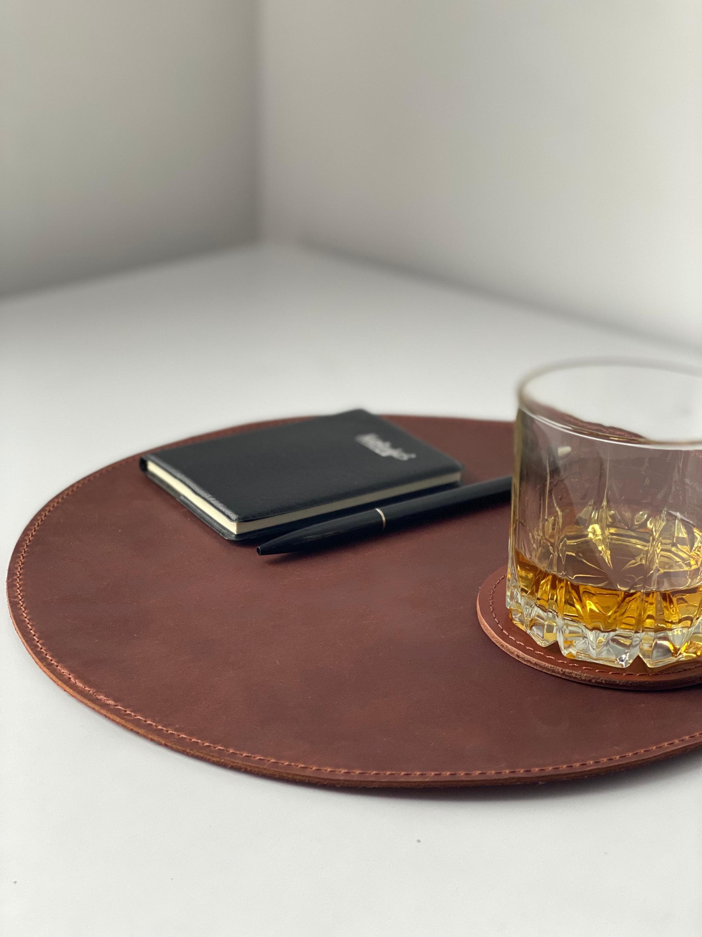 Leather round desk placemat, kitchen table decor, personalized desk...