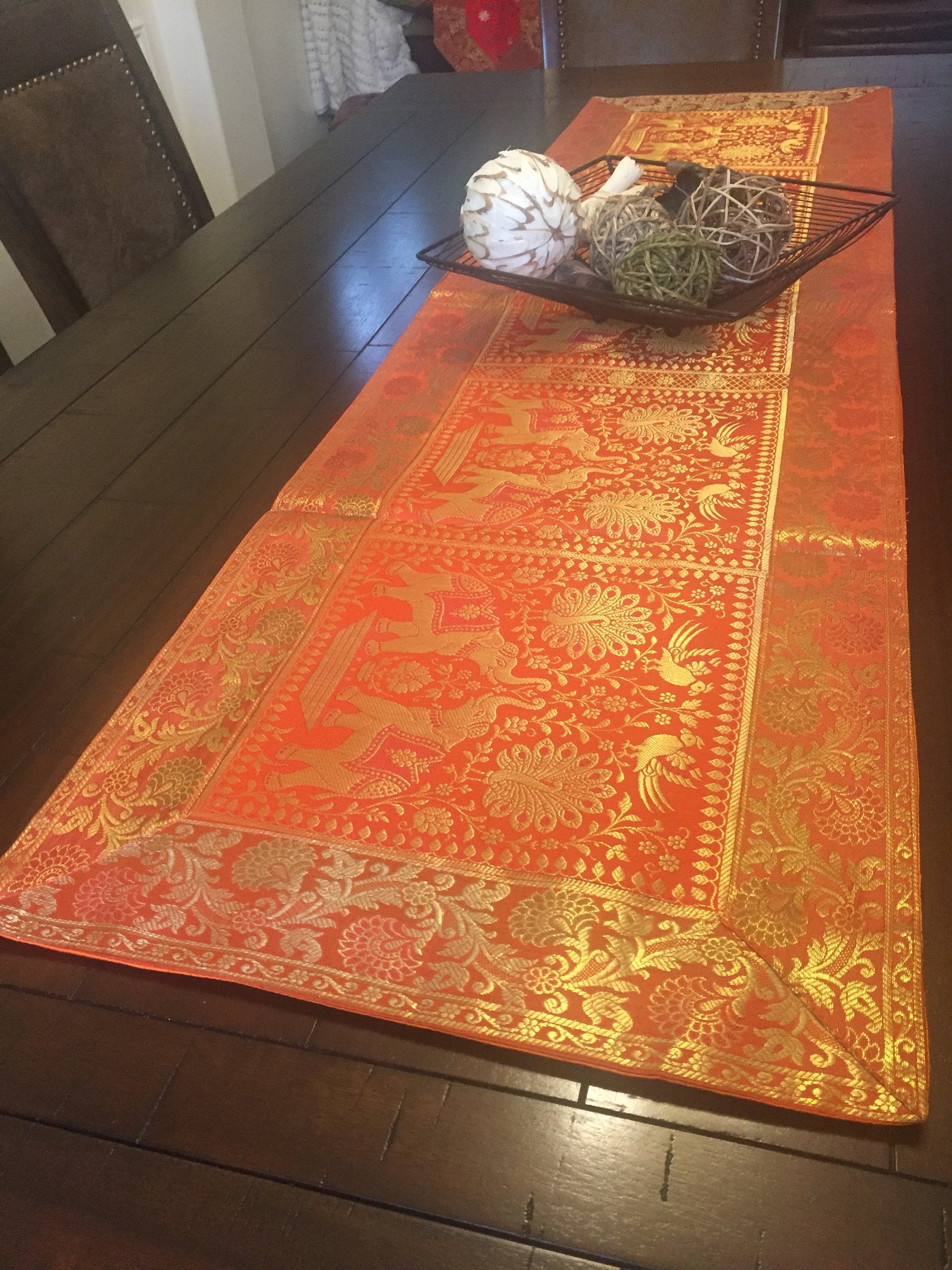 Table Runner Orange Wall Tapestry Brocade Silk Table Runner Formal ...