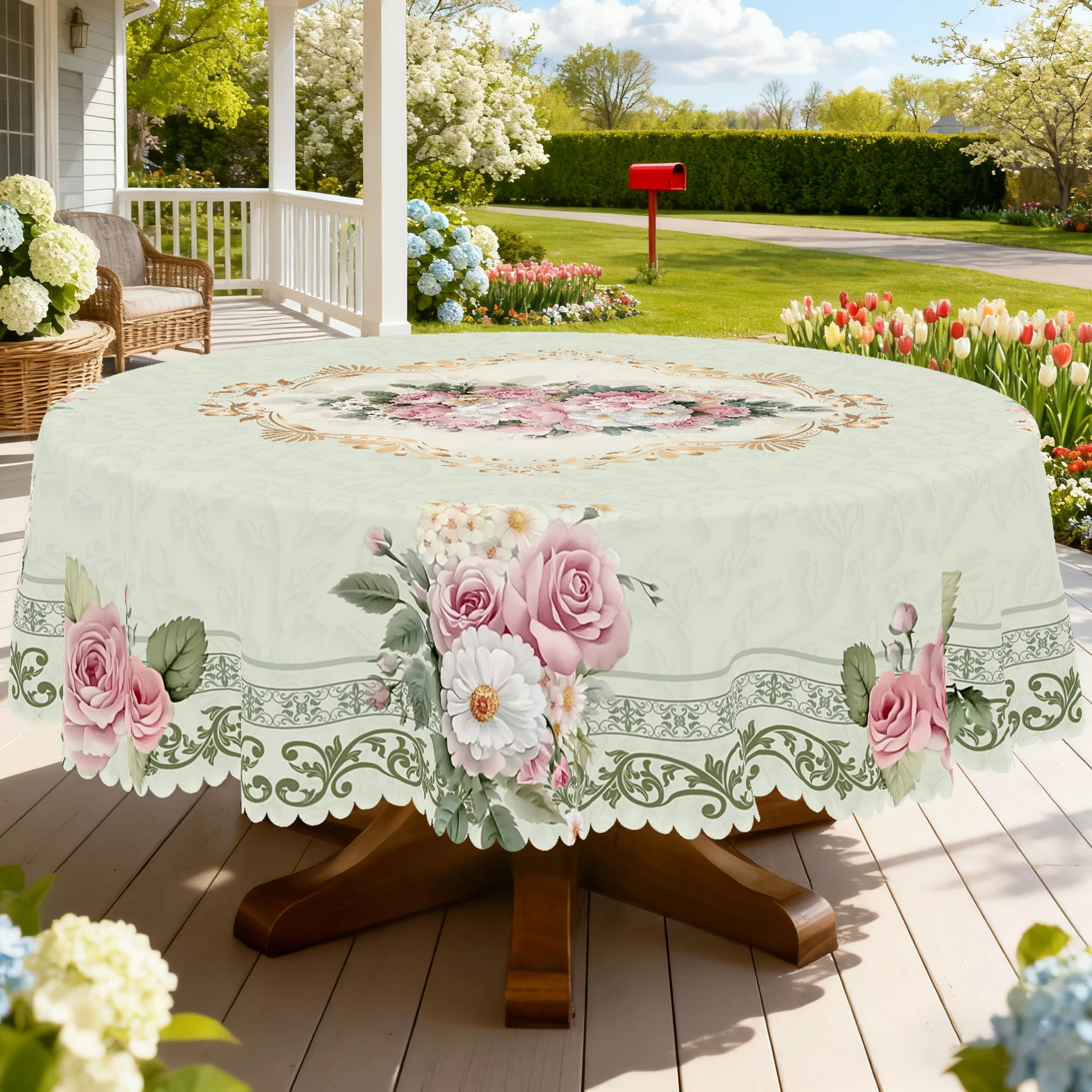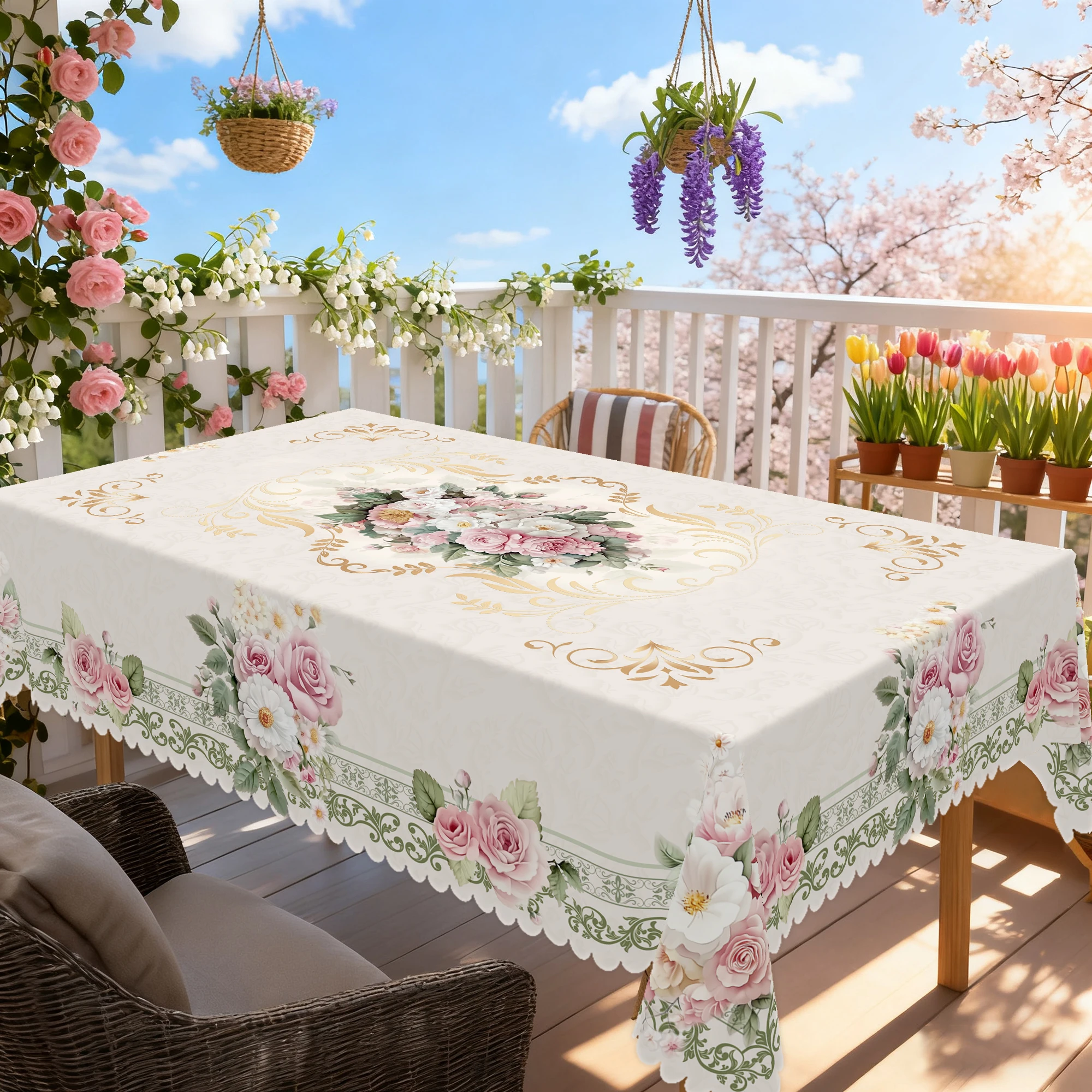 1 Piece of Retro Floral Theme Tablecloth, Farmhouse Style, Rose Pattern Design, Spring and Summer Ca...