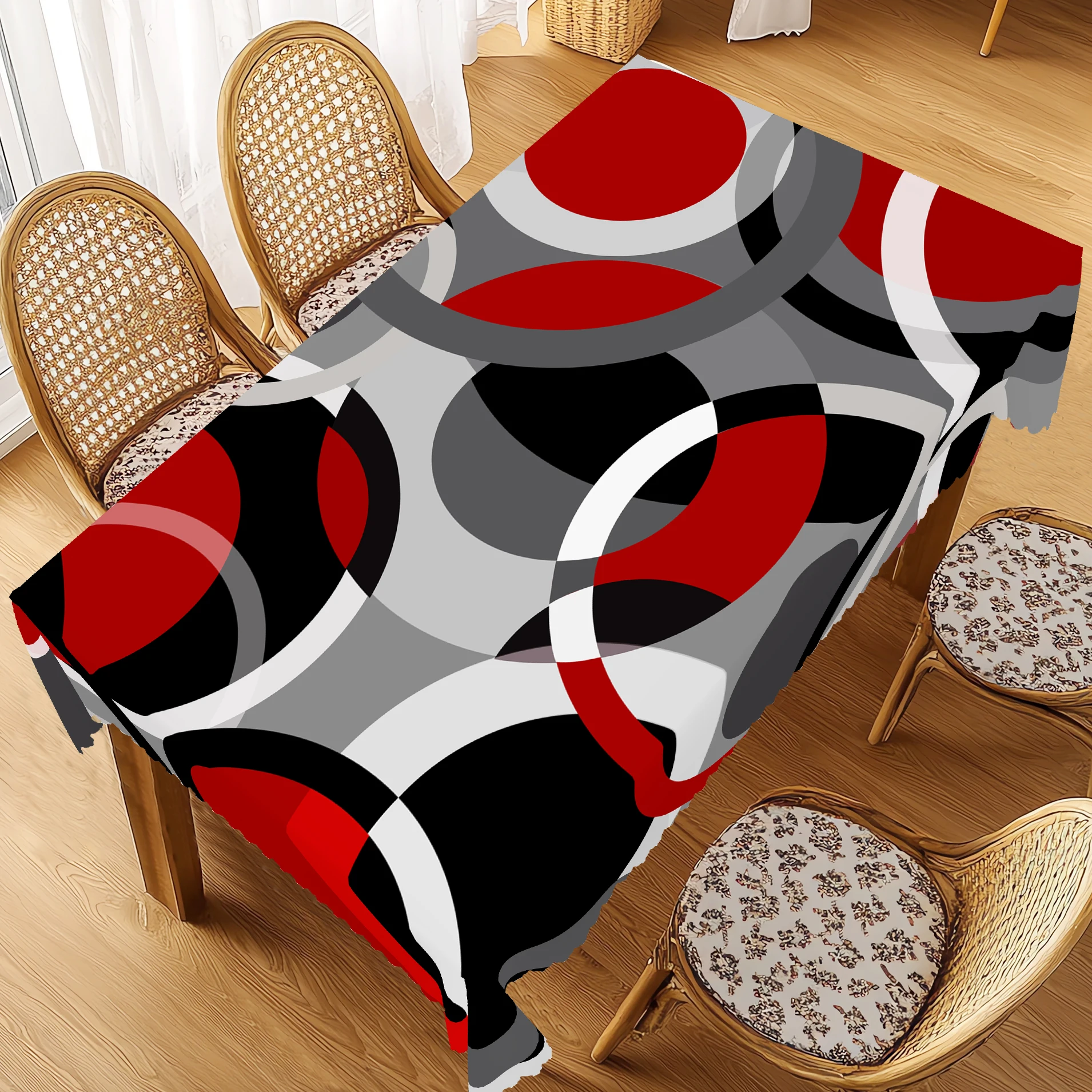 1 Piece of Simple Line Tablecloth, Red, Black, and Gray Geometric Pattern Round and Rectangular Tabl...