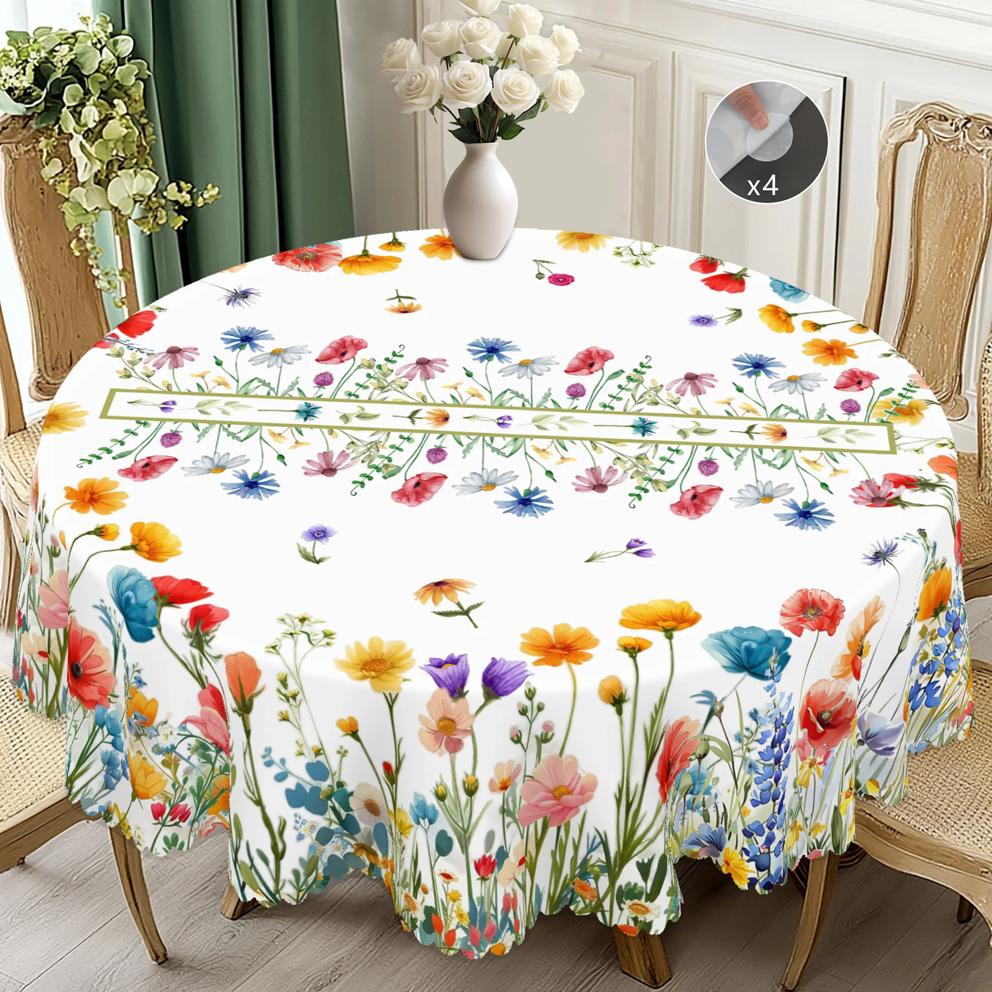 1 Bright and Vivid Flower-Themed Tablecloth, Colorful Flower Patter...