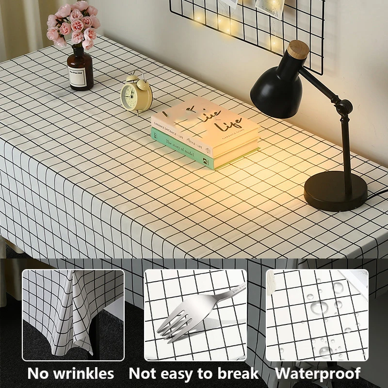 Simple checkered tablecloth, waterproof and oil-resistant tableclot...