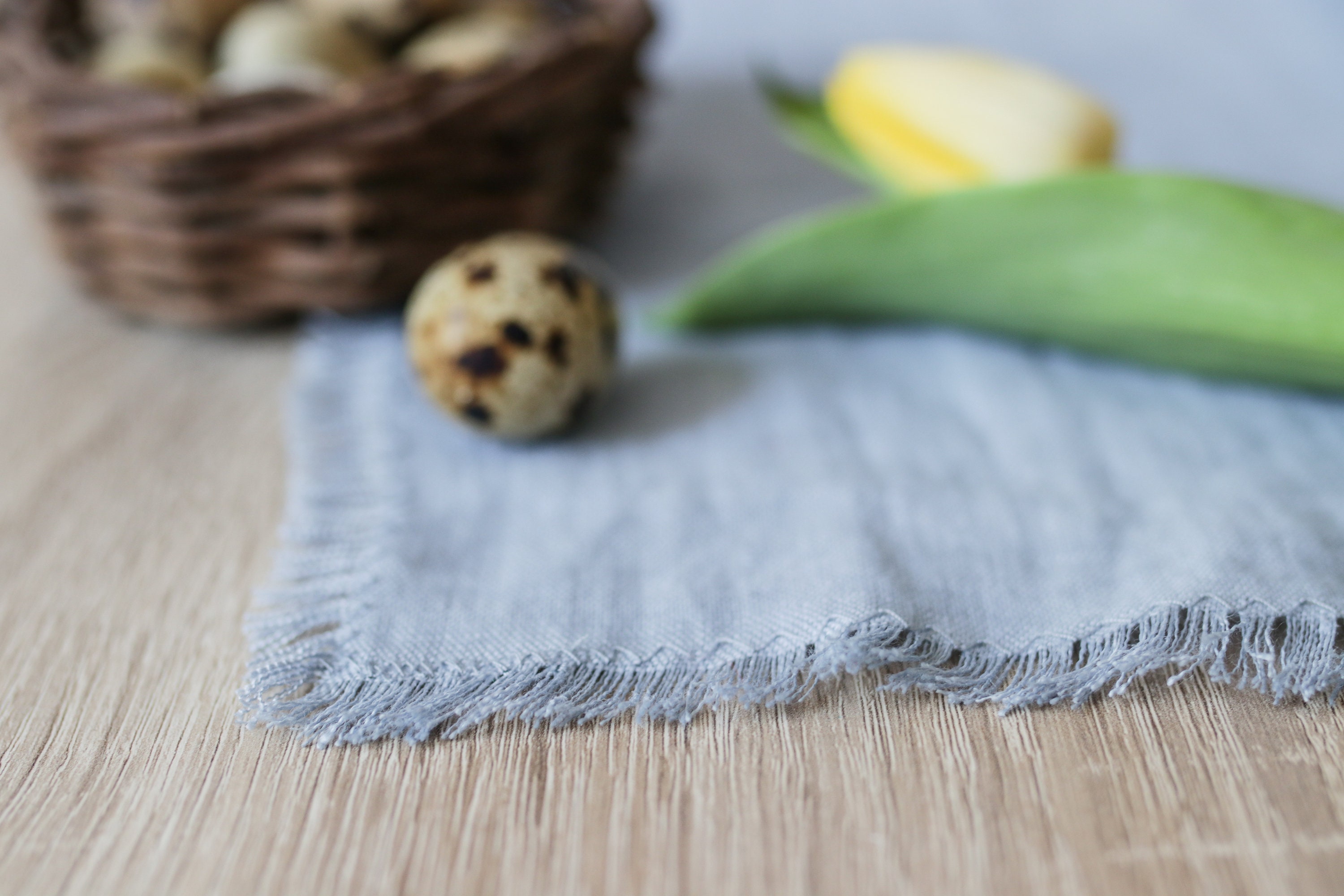 Dusty Blue linen table runners, fringe table cloth, rustic table ru...
