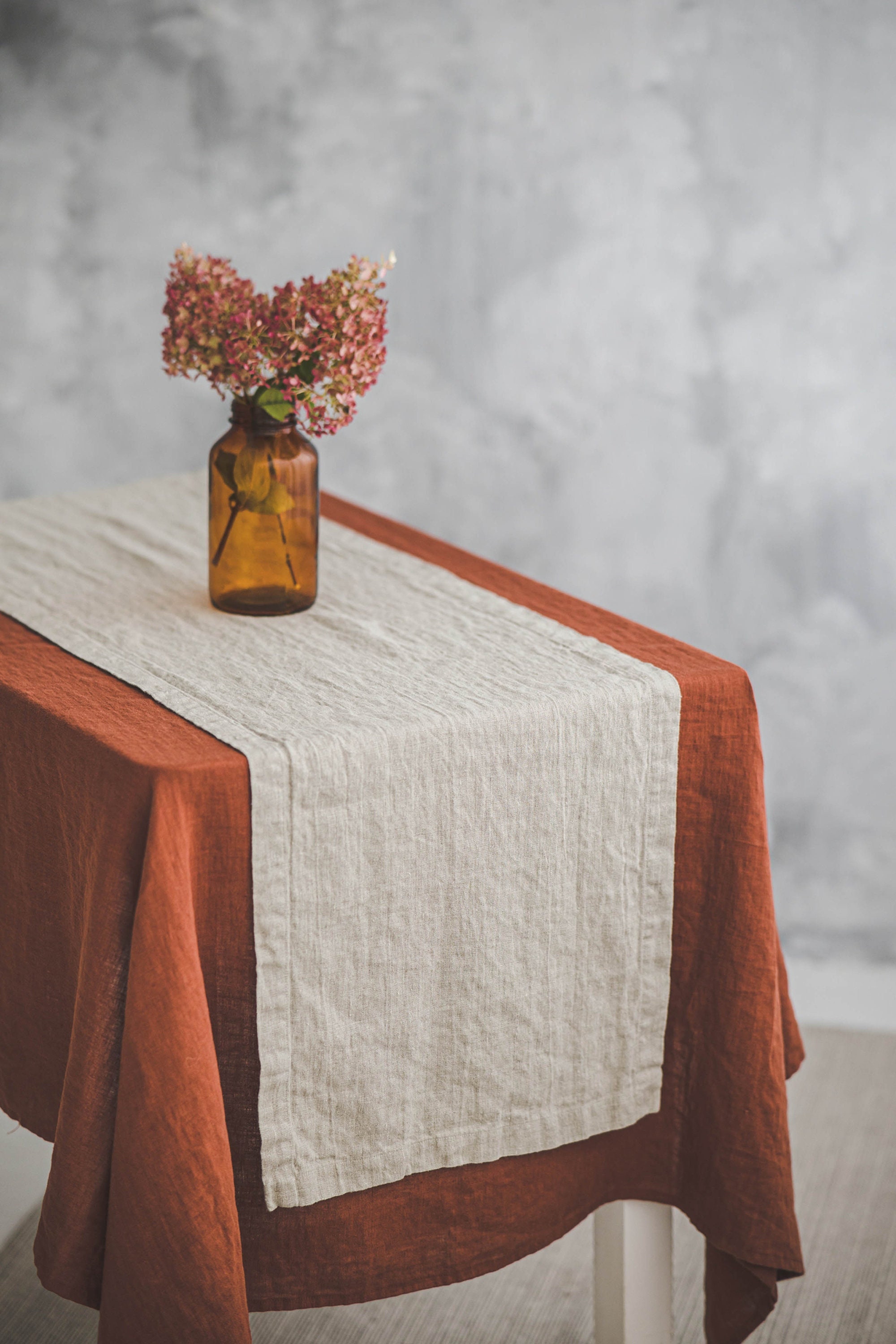 Thick linen table runner, Rustic table runner, Table runner with mi...