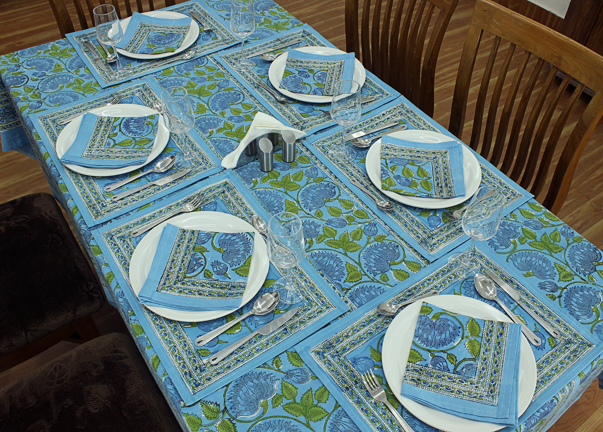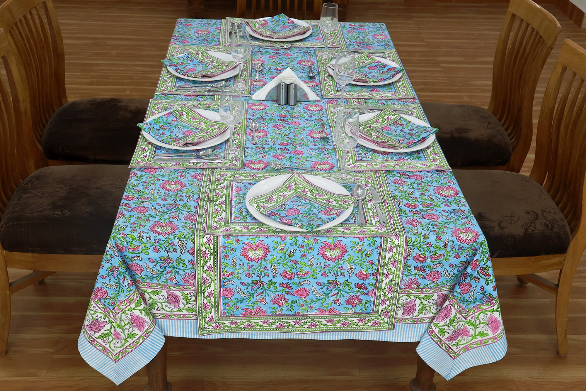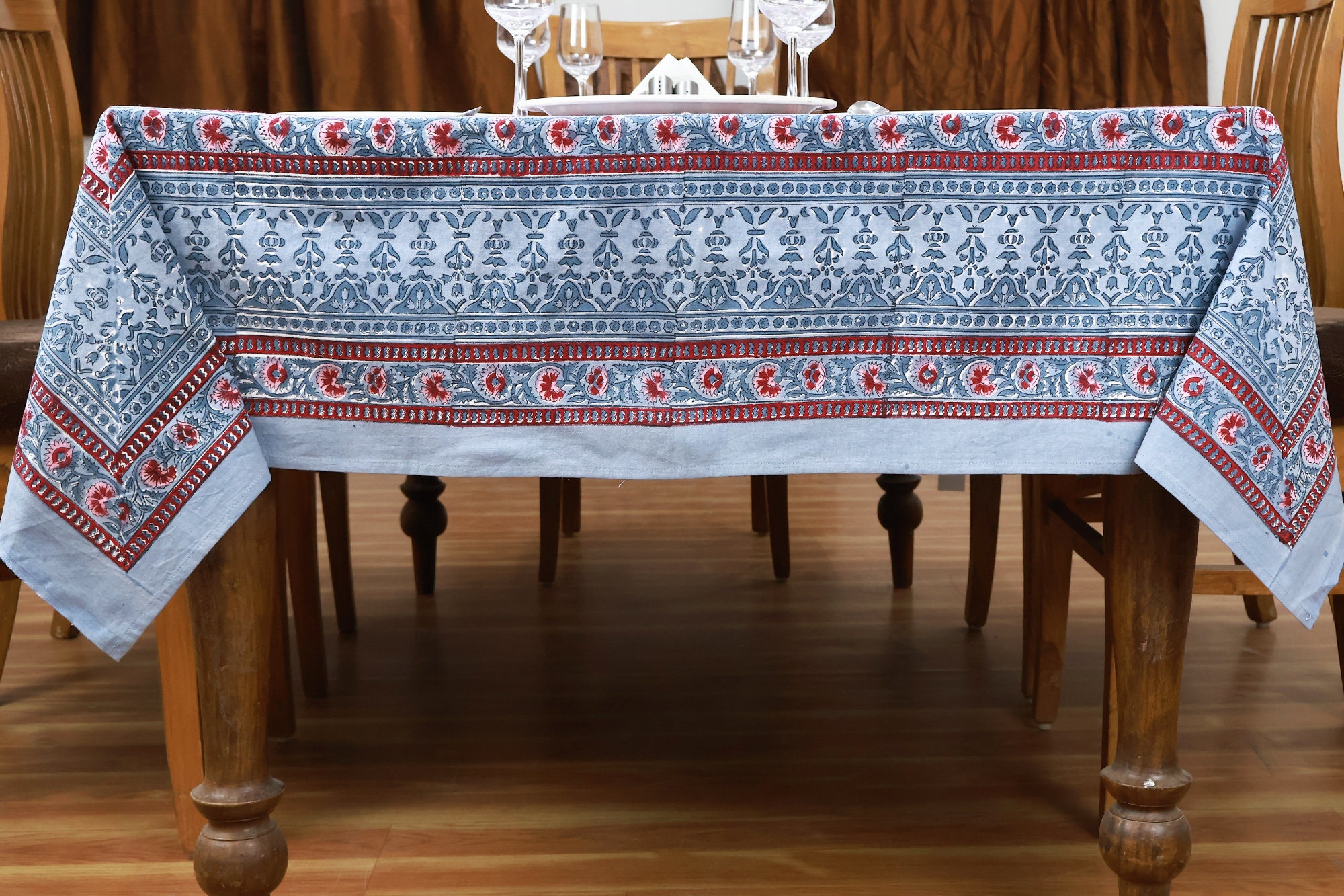 Block Print Cotton Tablecloth, Indian Floral Table Top, Dining Tabl...