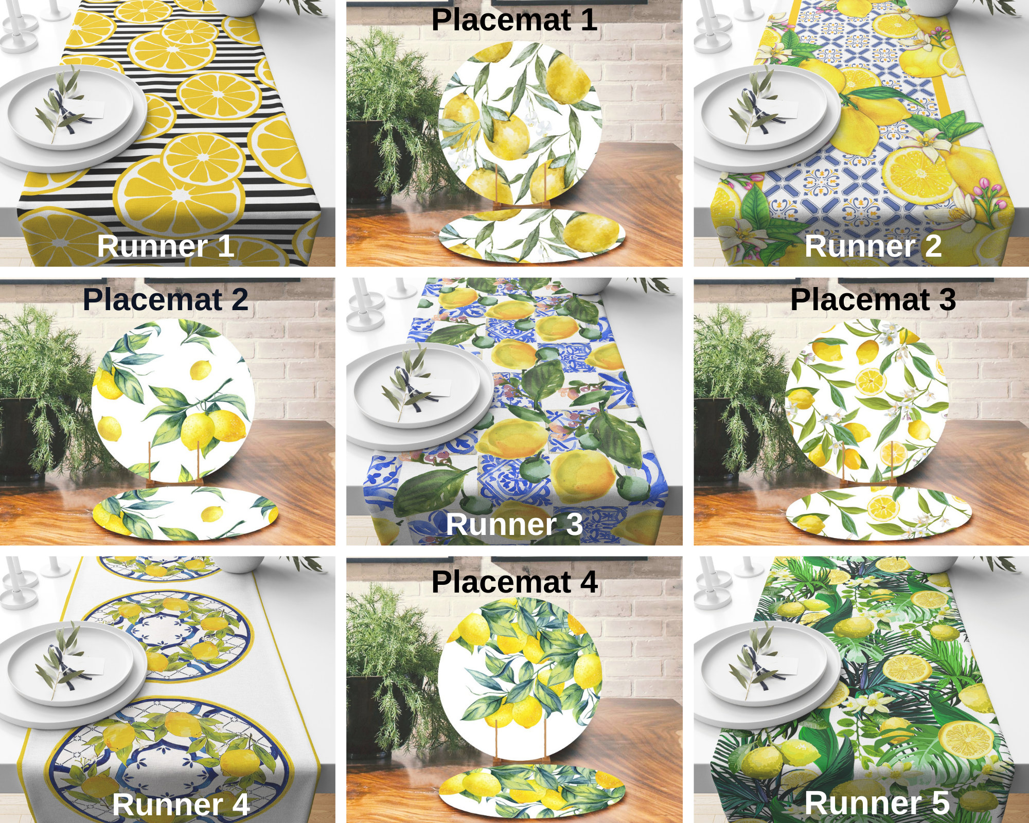 Lemon placemat table runner|Citrus table mat|Fruit table top|Kitchen Table Cloth|Dining table decora...