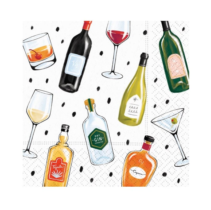 "Cheers to good times with these fun cocktail napkins! Featuring playful illustrations of gin, ...