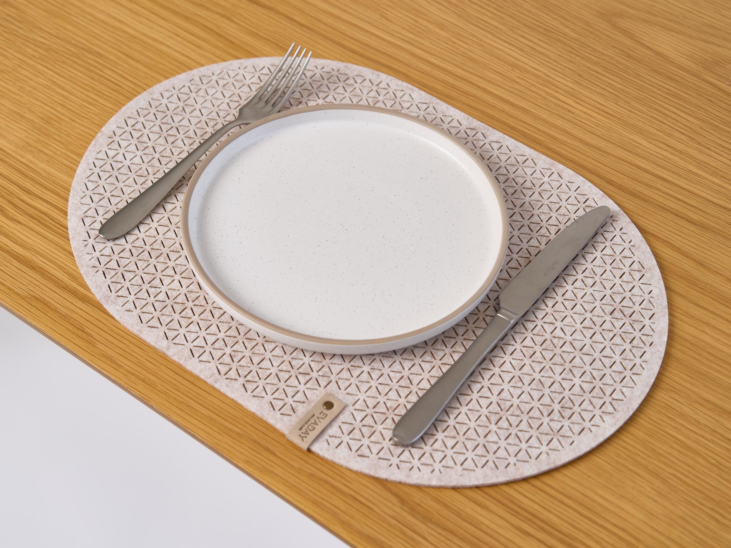 Washable Light Brown Colored, Oval Felt Table Placemats with STELLE Laser Cut are crafted from high-...