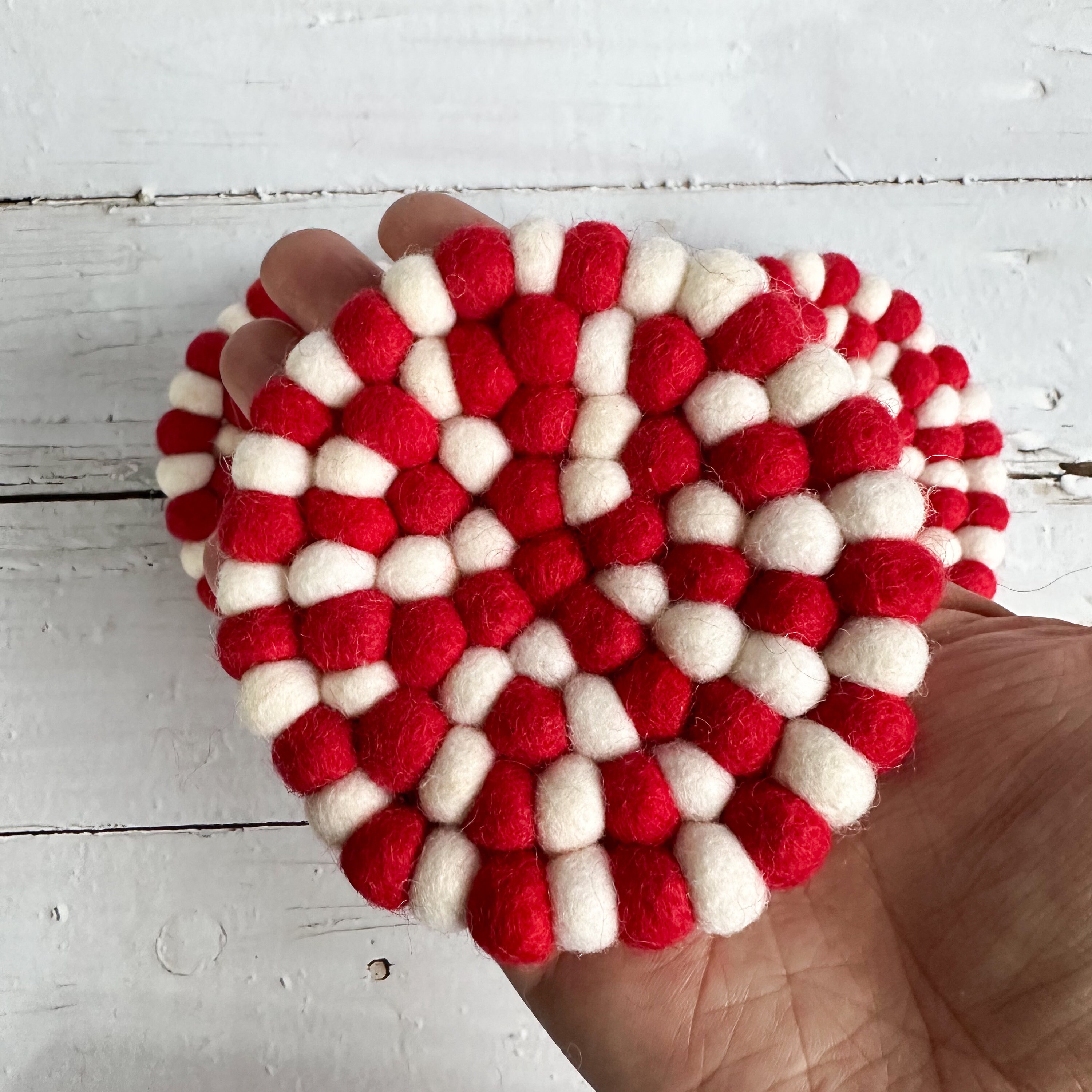 1 Felt Ball Candy Cane Style Coaster - 10cm | Felt Decor, Coasters,...