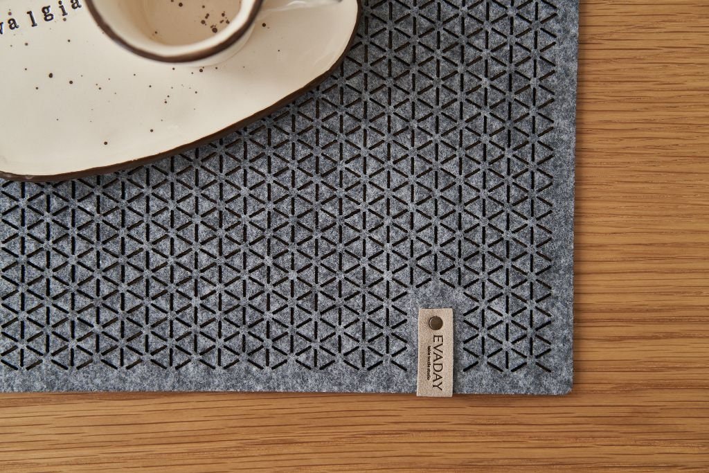 Round Grey Felt Placemats with Laser Cut Pattern - Washable Table P...