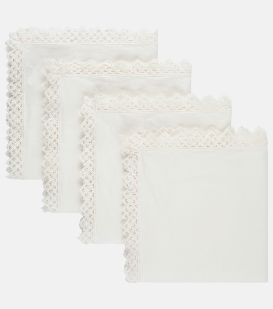 Once Milano, Set of 4 macramé linen napkins, White, Home tex...