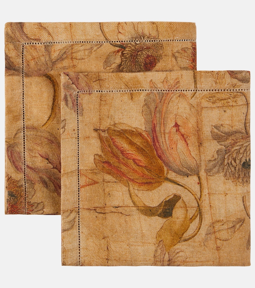 The House of Lyria, Otus set of 2 printed linen napkins, Beige, Hom...