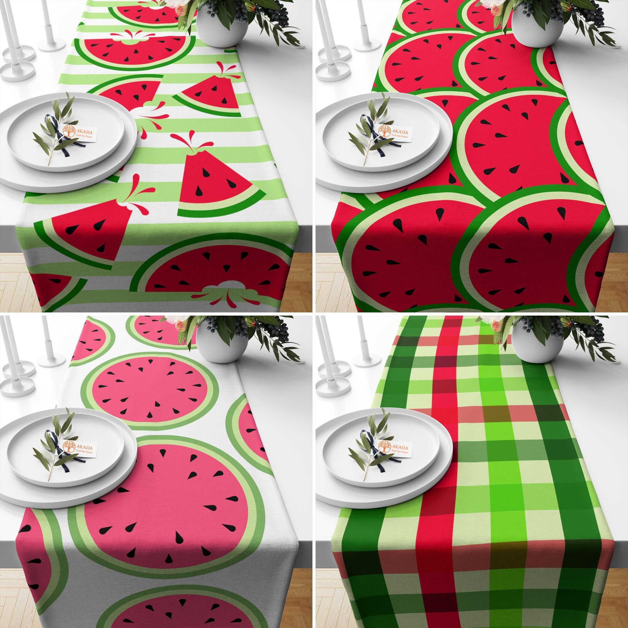 Watermelon Table Runner|Fruit Print Tablecloth|Decorative Tabletop|...
