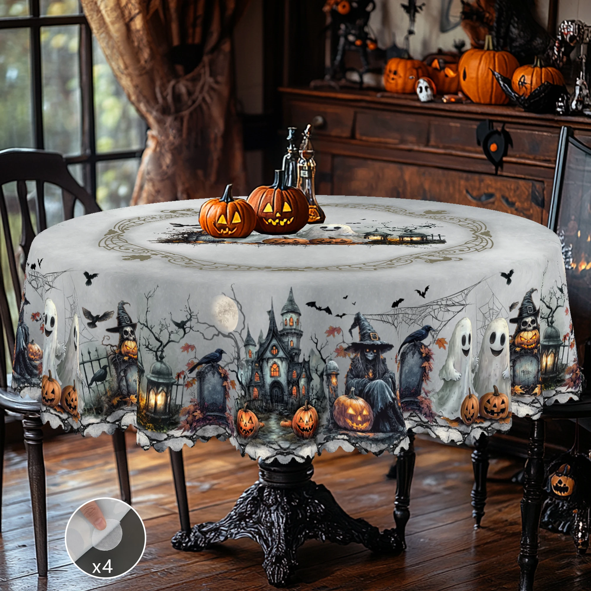 1 Halloween Themed Printed Tablecloth, Various Sizes, Witch and Pumpkin Lantern Printed Patterns, Pa...