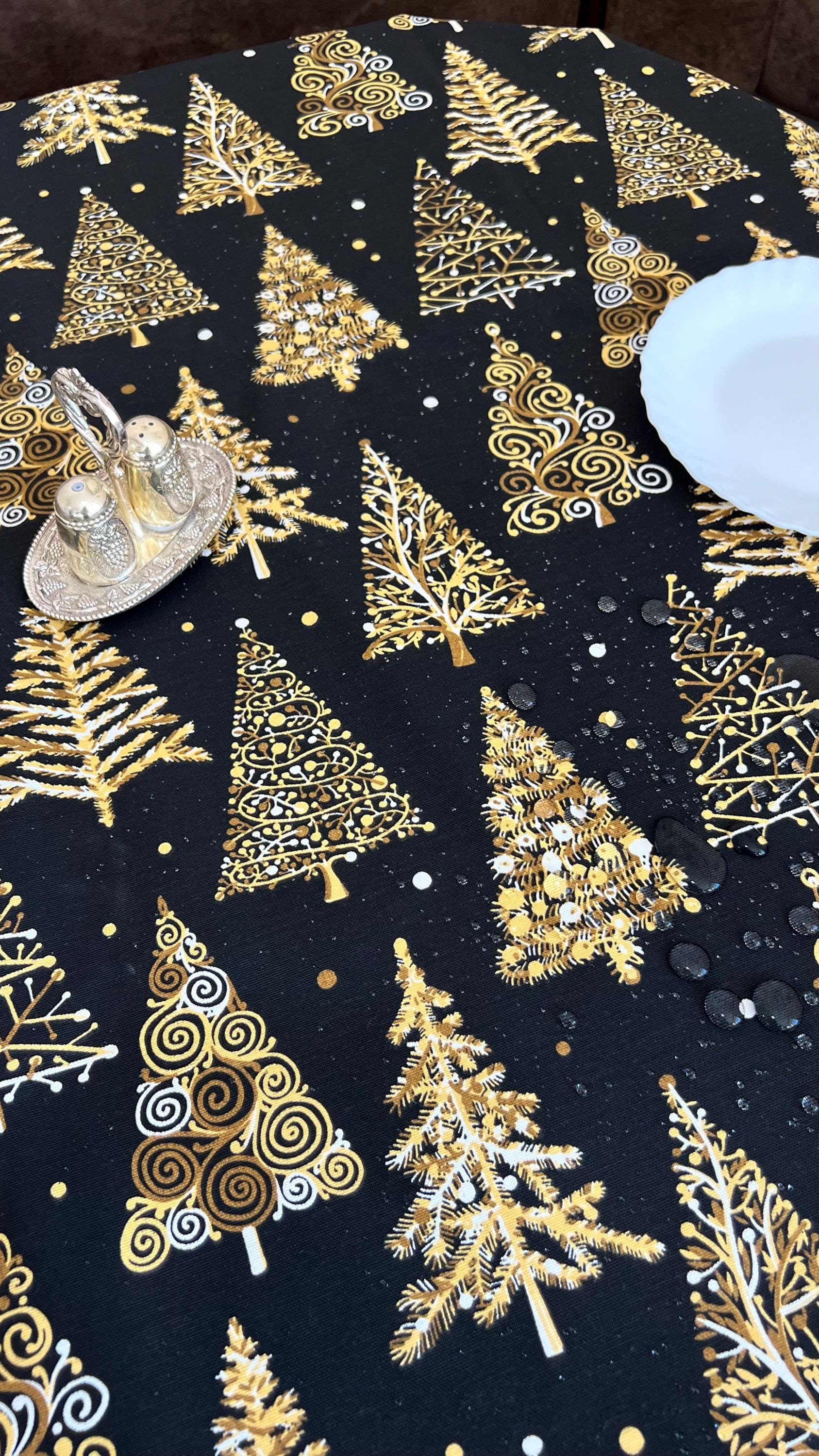 Gold Christmas tree tablecloth, black waterproof Christmas tableclo...