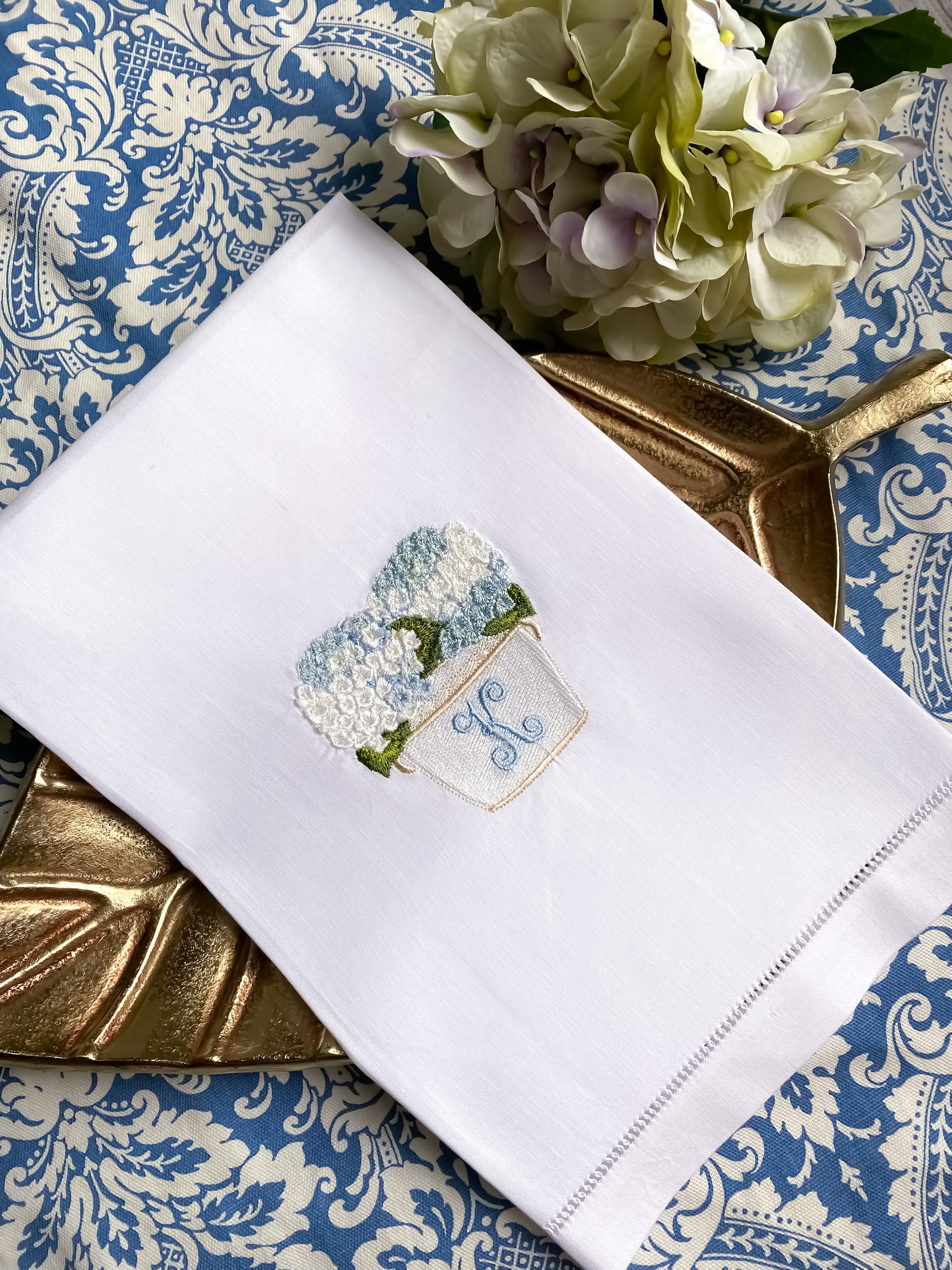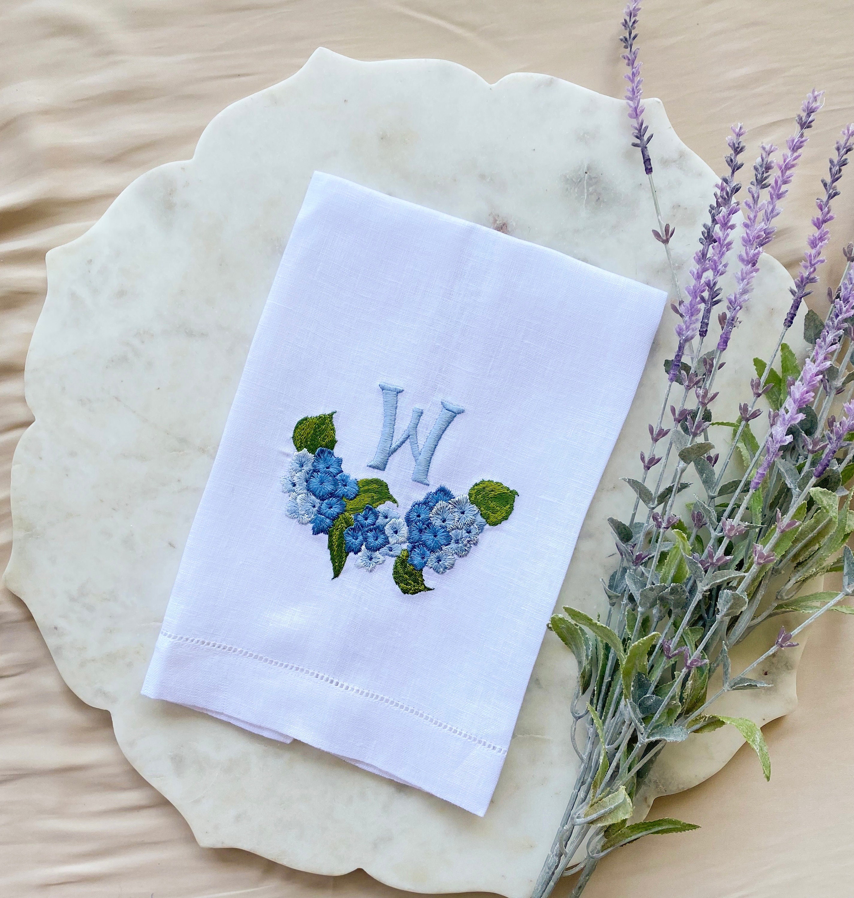 Hydrangeas Linen Tea Towels, Embroidered Bathroom Guest Towels, Lin...