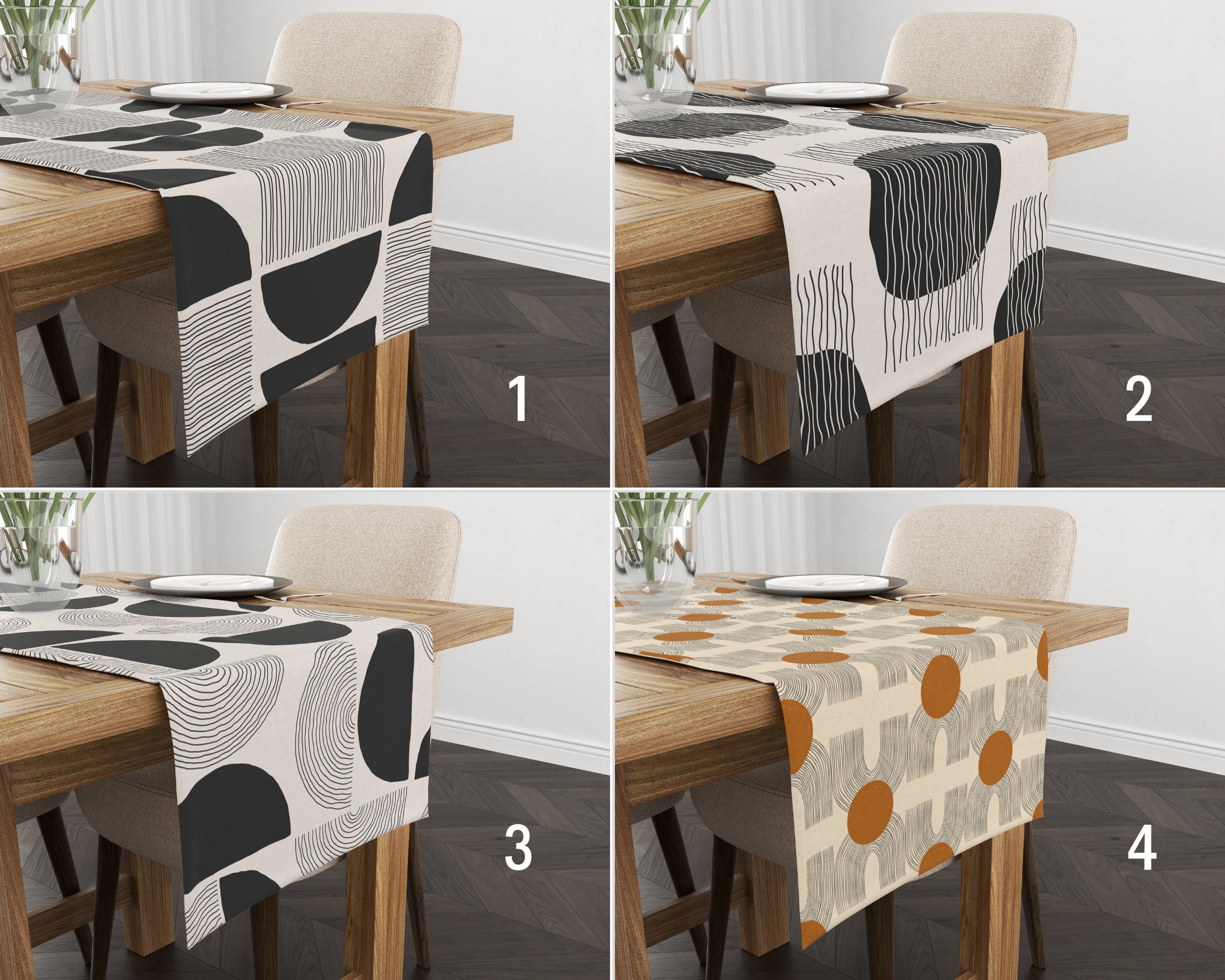 Mid Century Modern Table Runner, Abstract Lines Kitchen Runner, Cir...