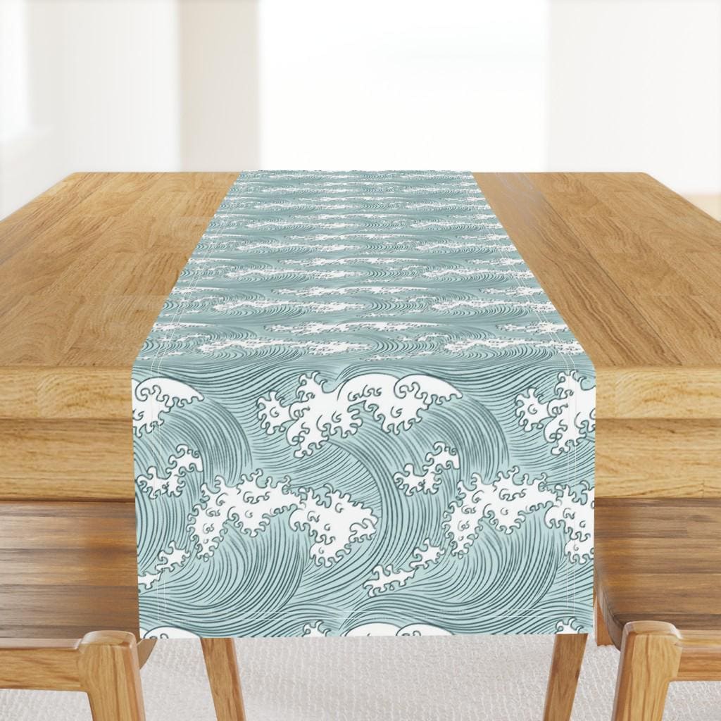 Rolling Waves Table Runner - Vintage Asian Chinese Japan Japanese W...