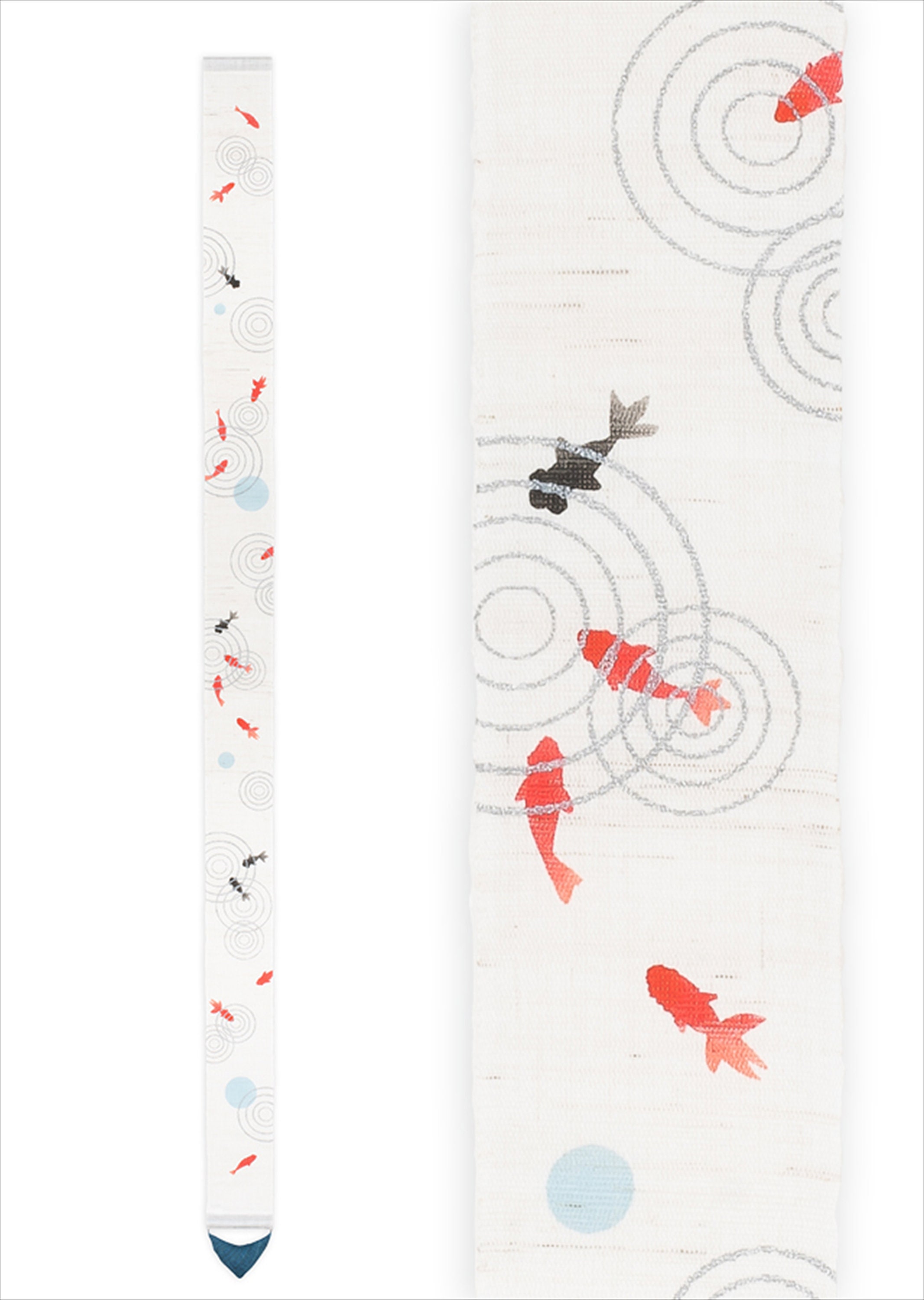 100% Linen Goldfish Hand painted Long and Narrow Japanese art Moder...