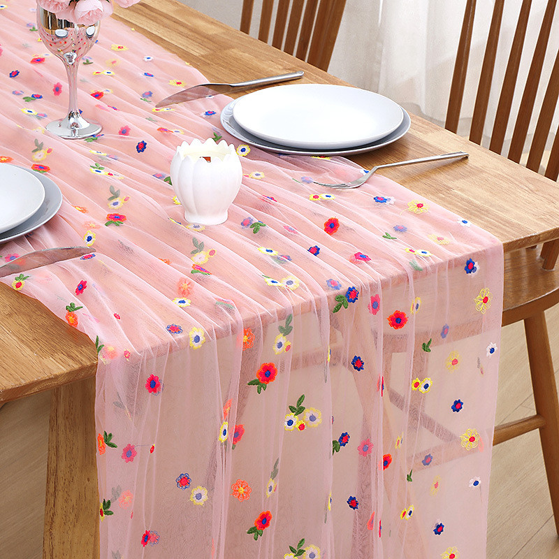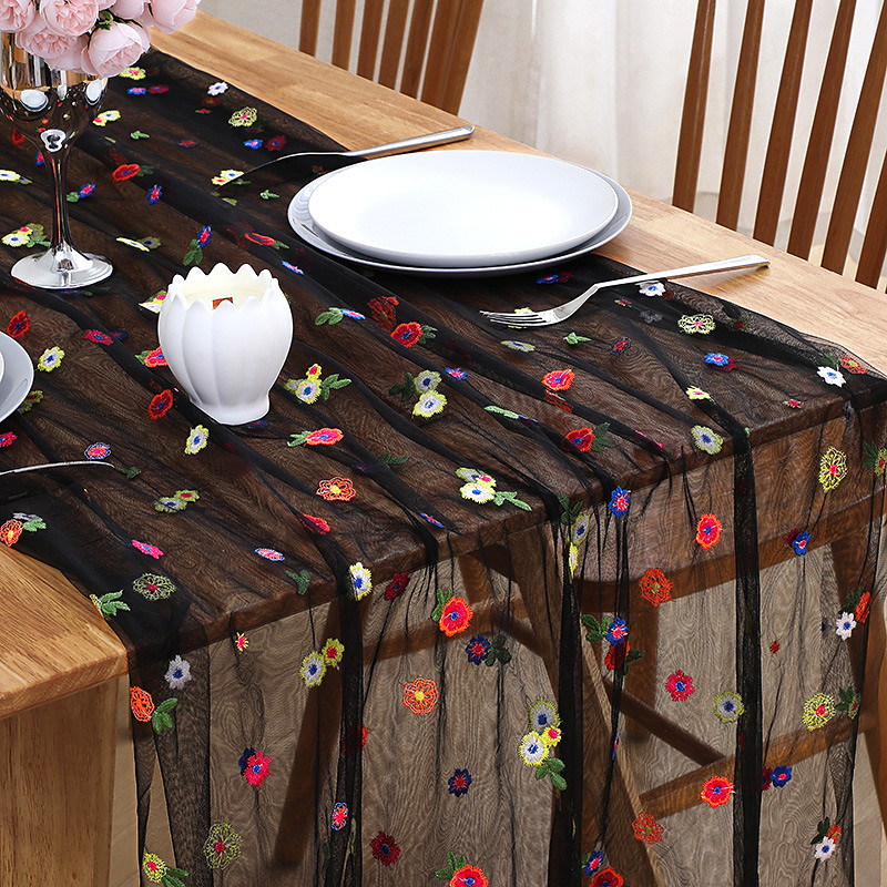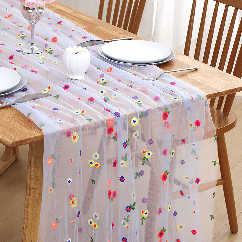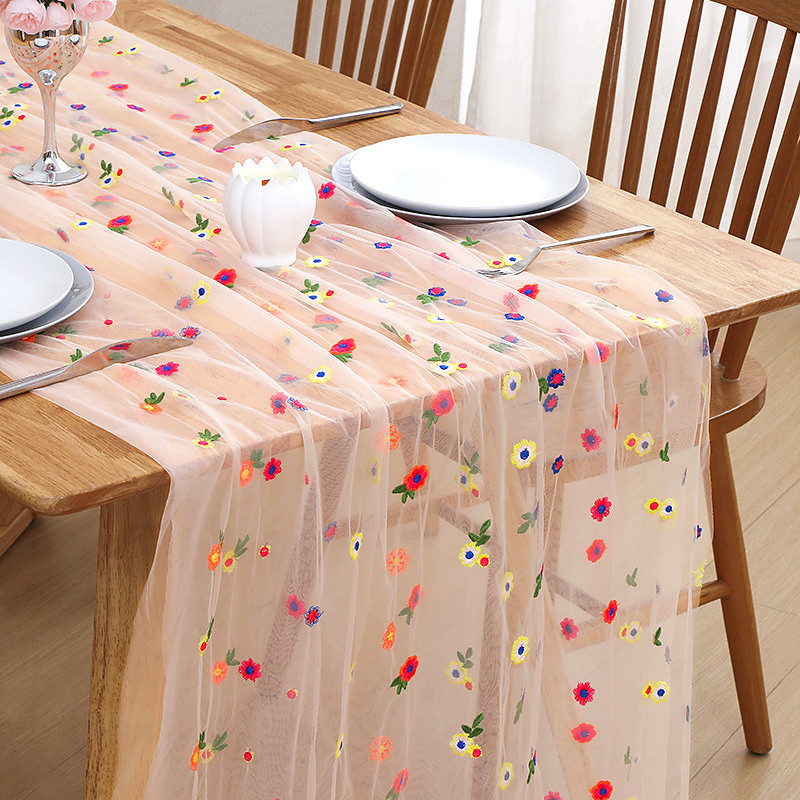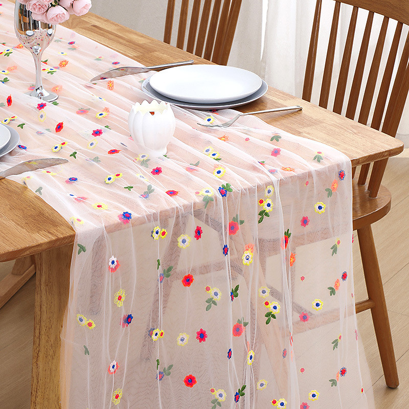 Embroidered Table Runner Daisy Lace Tablecloth Sheer Fabric Decorat...