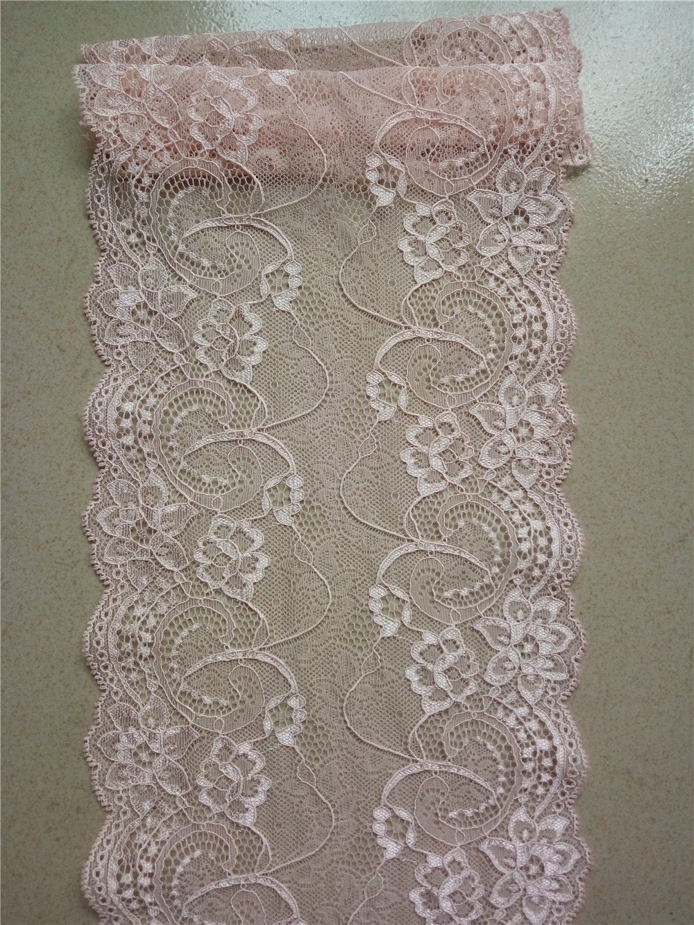 Narrow Blush lace runner, 7inch wide ,wedding table runner , lace t...