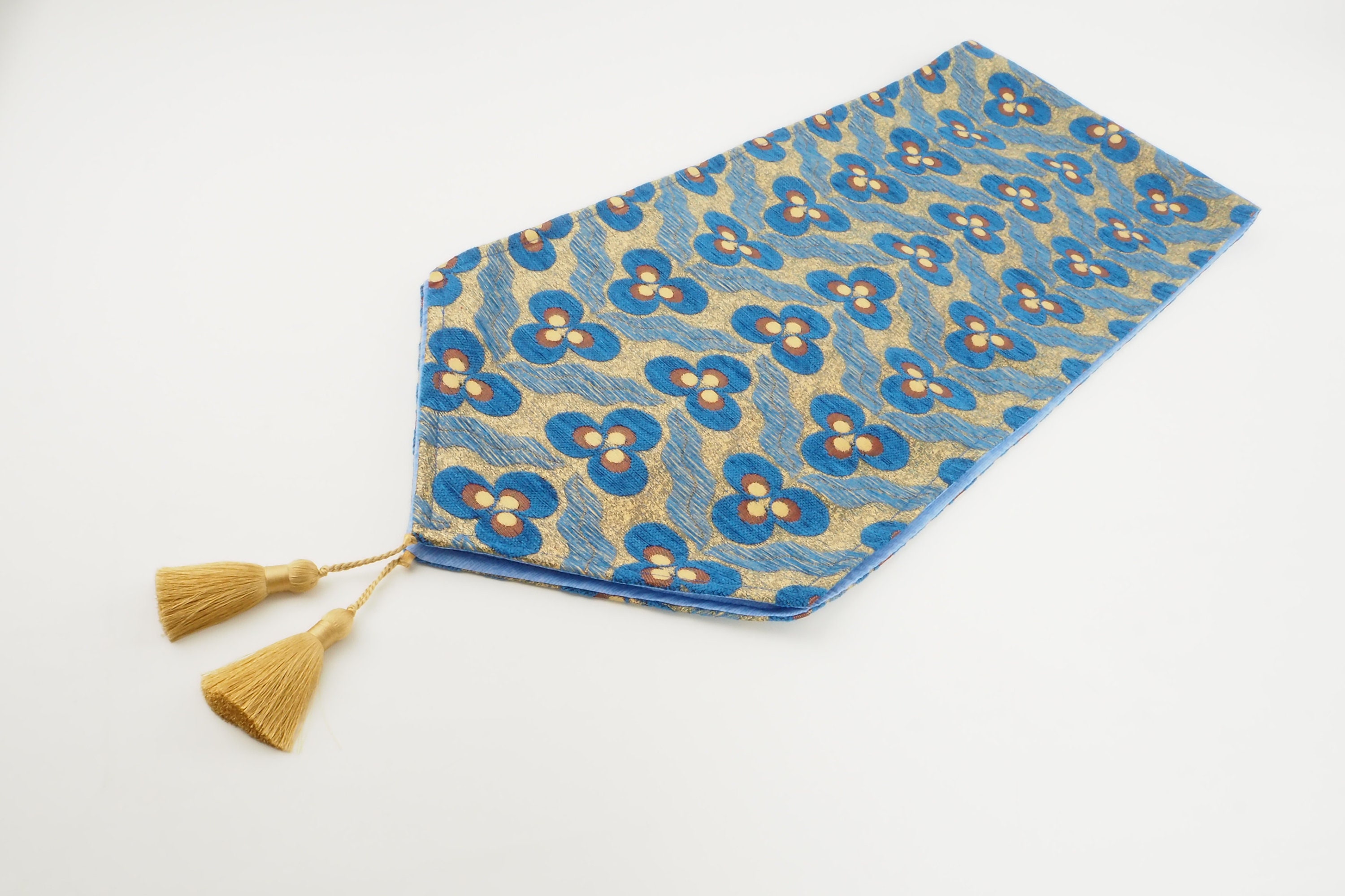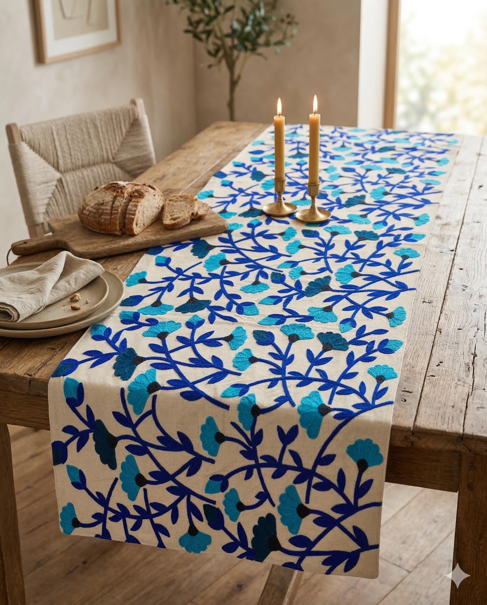 Blue Embroidered Table Runner - Floral Cotton Table Runner for Dini...