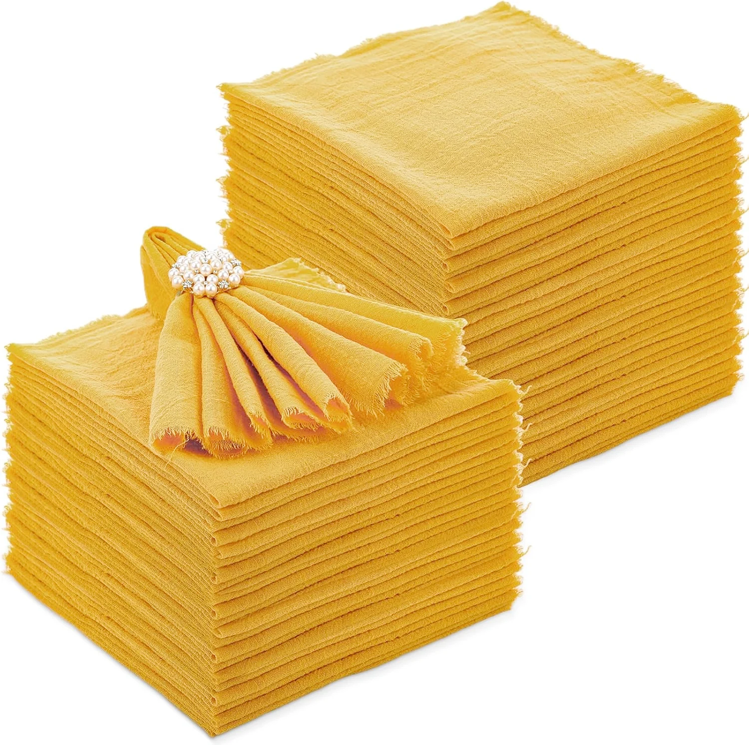 48PC Pink Cloth Napkins 30X30CM Handmade Gauze with Fringe Rustic Dinner Napkins for Wedding Party B...