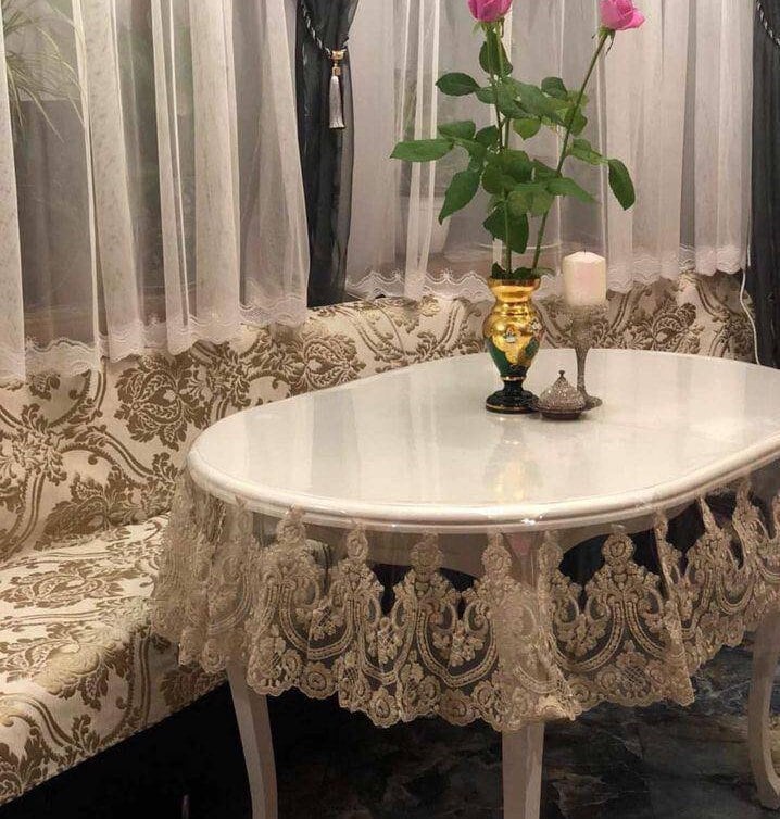 Transparent Table Cover for Dining Table, Royal Lace Silicone Table...