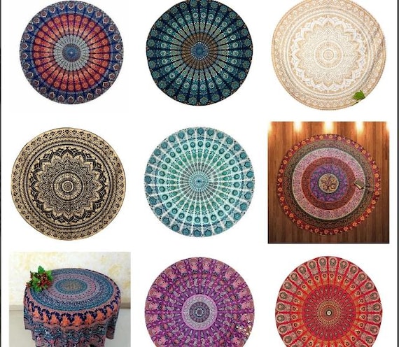 Indian handmade Pure Cotton Table Cover, Round Table Cloths, Wall H...