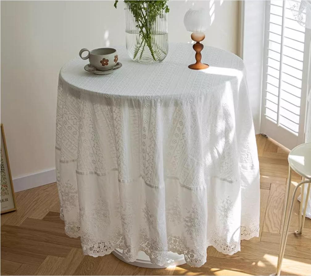French Style Lace Tablecloth: Elegant White Round Coffee Table Cove...