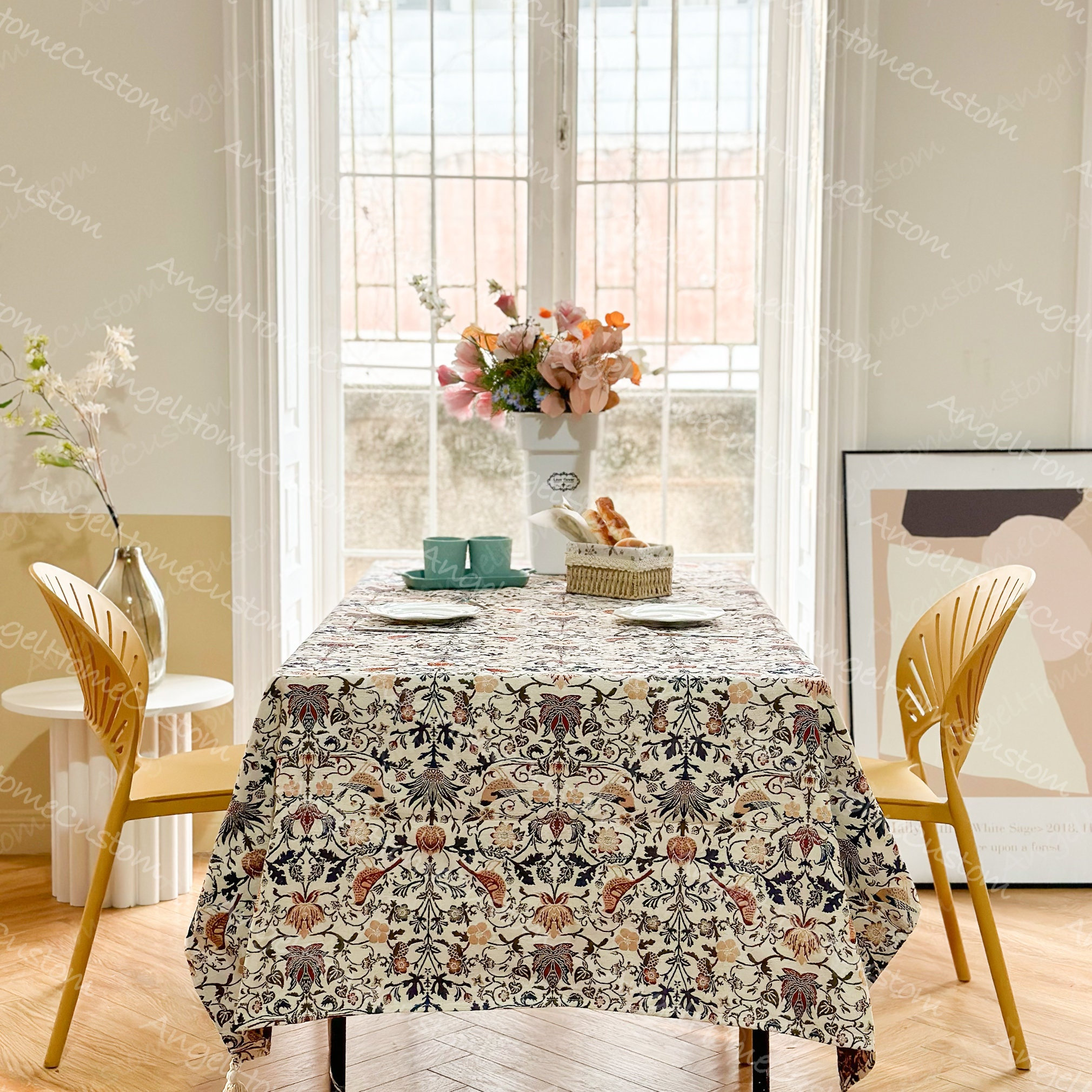 Table Cover White Linen Cotton Tablecloth Rectangular Flower Americ...