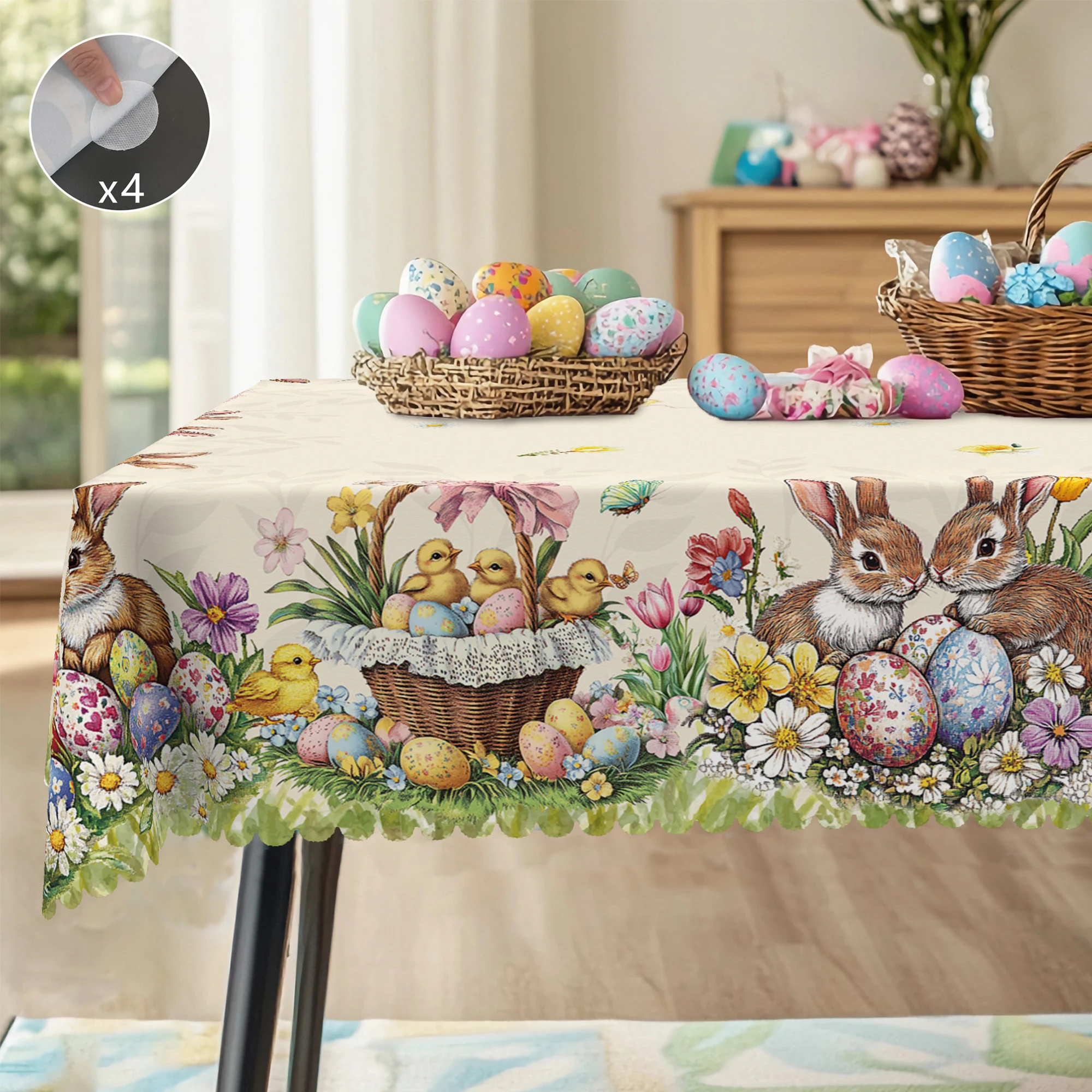 1 Piece Easter Round and Rectangular Tablecloth, Available in Various Sizes, Easter Bunny and Egg Ba...