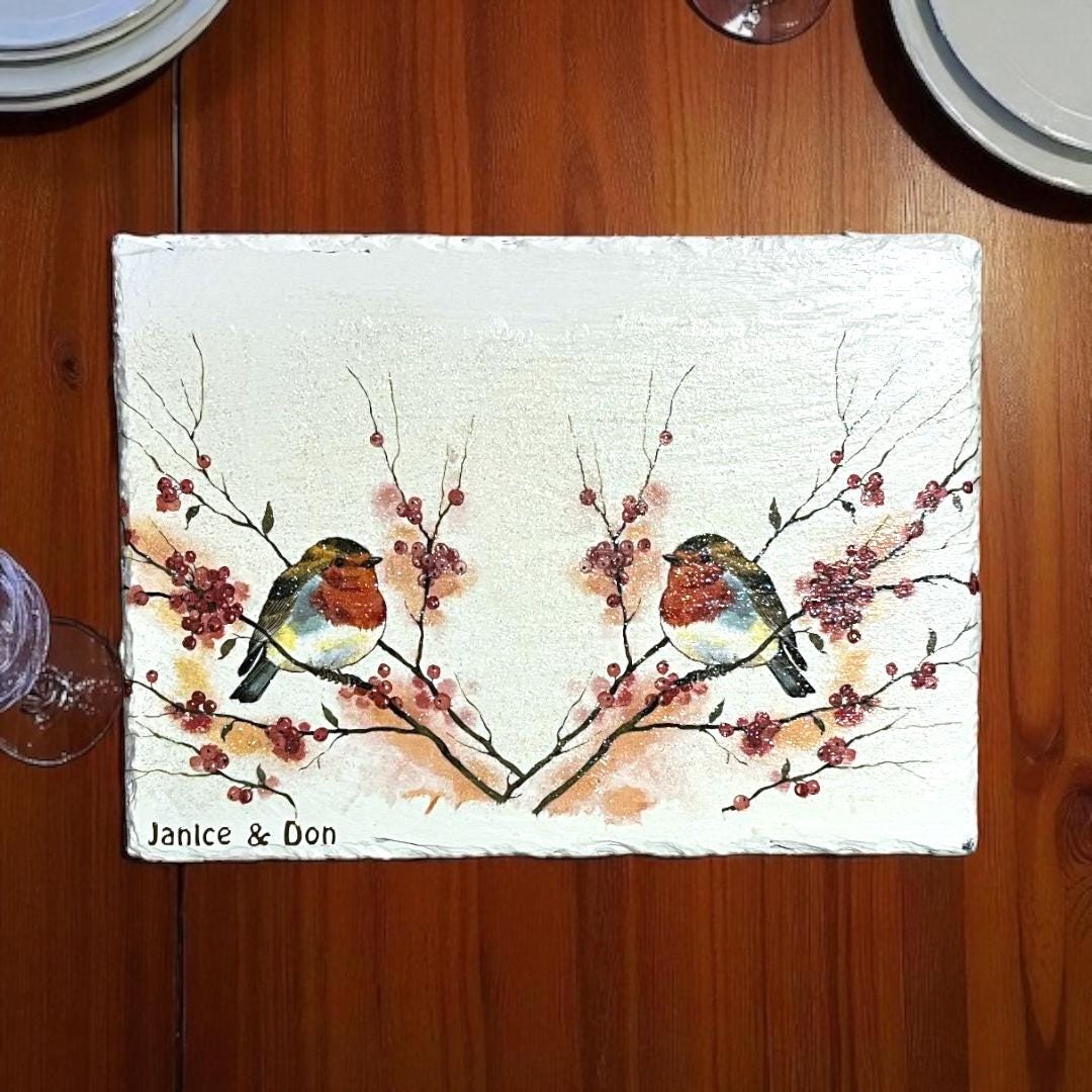 "Check out our stylish placemats handcrafted from natural slate. We use a paint technique to cr...